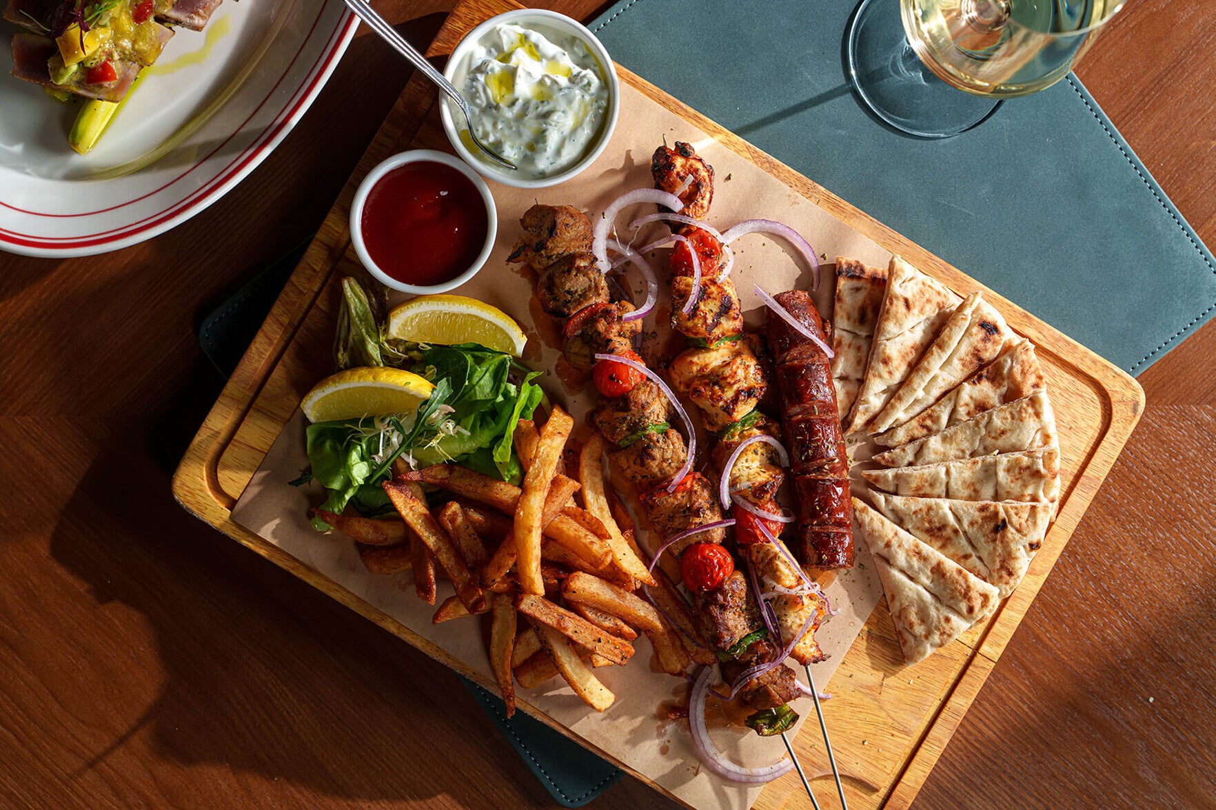 不吃牛的可以試試希臘燒烤串,內有希臘香草豬肉香腸,再配上希臘薯條及希臘酸奶黄瓜蒜香醬,充滿希臘風味;用香料醃至入味的新西蘭全架奶飼羊,以猛火燒香,肉質細膩鮮嫩。