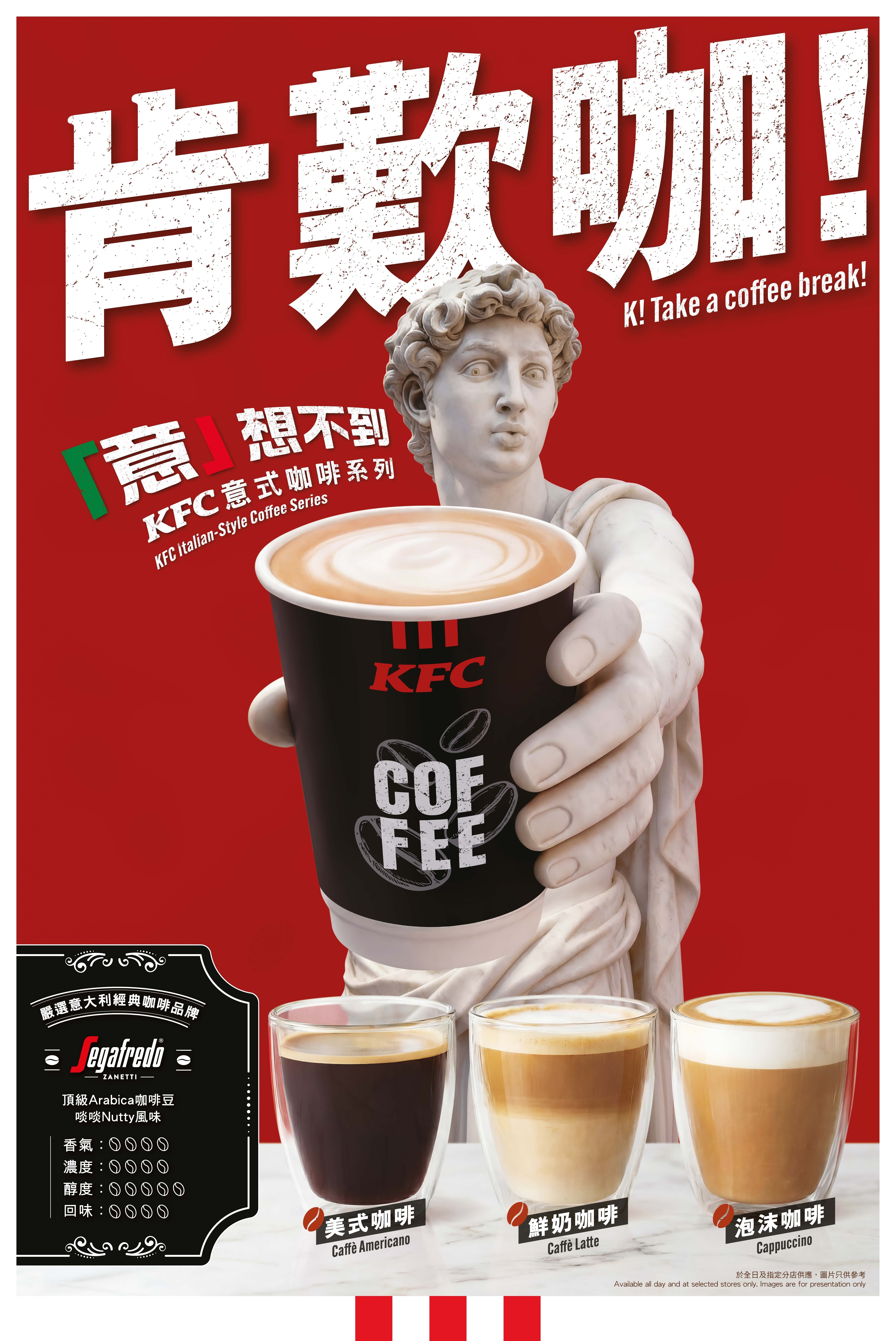 KFC 全線分店正式引入意大利殿堂級咖啡品牌 Segafredo Zanetti,以嚴選 Arabica 咖啡豆特製專屬拼配,以傳統意式烘焙呈現醇厚濃郁的意式風味,入口散發濃烈可可與堅果香氣,每啖都能享受細緻層次。