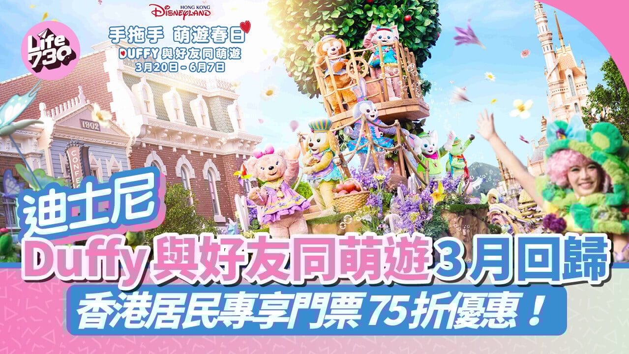 春回大地,萬物生輝,同時代表迪士尼年度盛事「Duffy與好友同萌遊」即將回歸!3月20日起,迪士尼推出一連串活動,焦點包括全新「可愛座」打卡位及StellaLou夢想起舞吧,換上全新春季造型的Duffy與好友更會現身,與粉絲一起渡過奇妙時光。香港居民即日起專享「快樂同遊」門票預訂優惠,購買1日門票即享75折。