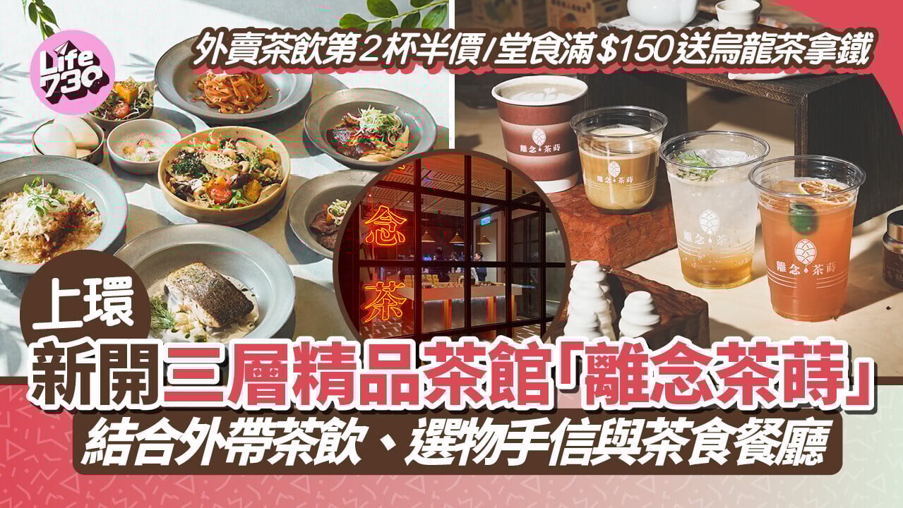 香港近年興起品茶熱潮,上環又有一個新茶館「離念茶蒔」,三層空間集合外帶茶飲、選物手信、茶食餐廳、原茶品鑑及活動場地。為慶祝開業,即日至3月6日期間更推出限時雙重優惠:外賣茶飲買1杯第2杯半價,堂食消費滿150元更可免費換領重焙烏龍茶拿鐵一杯。讓茶迷在繁忙都市中也能品嘗到精品茶。