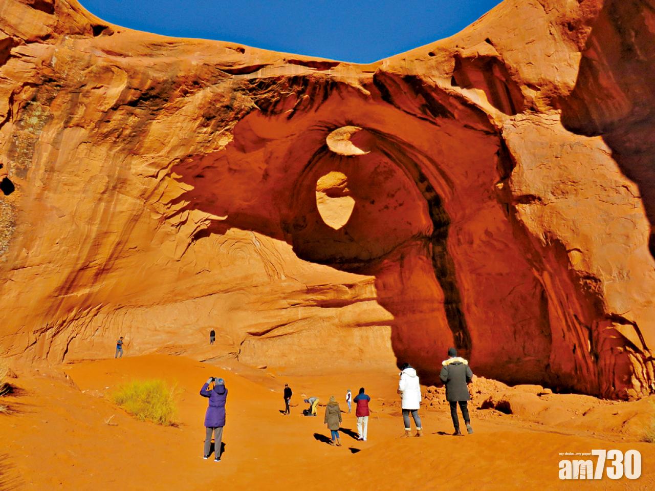 攝影發燒友面對數不清如紀念碑的奇石,經常遇上這難題。我以前在不同時間來過,發覺真的不容易取捨。黃昏夕陽照得經典的左、右和Merrick等3塊Butte巨石通紅似火,背靠藍天美到不得了,但John Ford Point那邊卻陷在陰暗中,清晨則相反,所以立心拍靚相的難免要全天恭候。紀念碑谷是納瓦霍土著的保護地,進去遊覽只能繳費並循固定路線自駕遊或參加土著開辦的導賞團。我極推薦後者,好處是有當地人詳細講解之外,印第安人也會帶導賞團多看他們自家生活的Hogan泥墩帳篷,及前去自駕路徑去不到的角落。紀念碑谷除了各式怪石奇觀,沙漠裡還有幾個風蝕石拱或石窗,愛拍照的當然不會放過。想多探索土著文化的,那裡還有神秘的遠古岩石壁畫。按考據,壁畫甚至擁有萬年歷史,粗拙而有點古怪迷離的圖像,許多描寫以前印第安人的荒野生活及狩獵活動。談到生活,不少遊客來到紀念碑谷也會留宿一晚,大部分都住在最靠近景點的Goulding’s Lodge和The View Hotel。前者已有接近百年歷史,原址是昔日的西部驛站,過往很多牛仔電影來攝製,大明星亦下榻於此。古驛站建築改作博物館,其間陳設重新展視昔日情景,而大量老照片則記敘以當地為背景的電影資料。近年納瓦霍人開始發展谷地B&B,Verna Yazzie女仕([email protected])首創傳統土著泥墩帳篷住宿;來客小住一兩天,享受正宗印第安風情之餘,還可從中學習納瓦霍的文化與習慣。