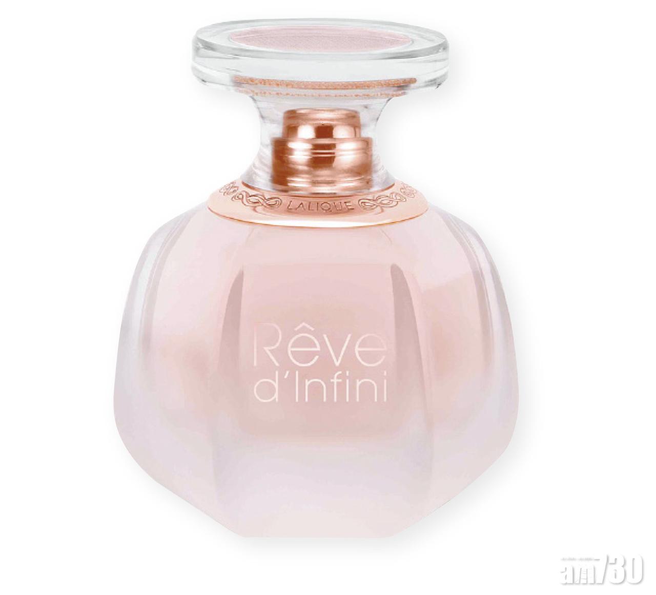 LALIQUE Rêve d’Infini 香水以清新優雅的香氣頌讚女性之美。以玫瑰、小蒼蘭及茉莉花等花香,加上雪松及麝香等,帶來明亮優雅的感覺。$600/30ml、$900/50ml、$1,200/100ml
