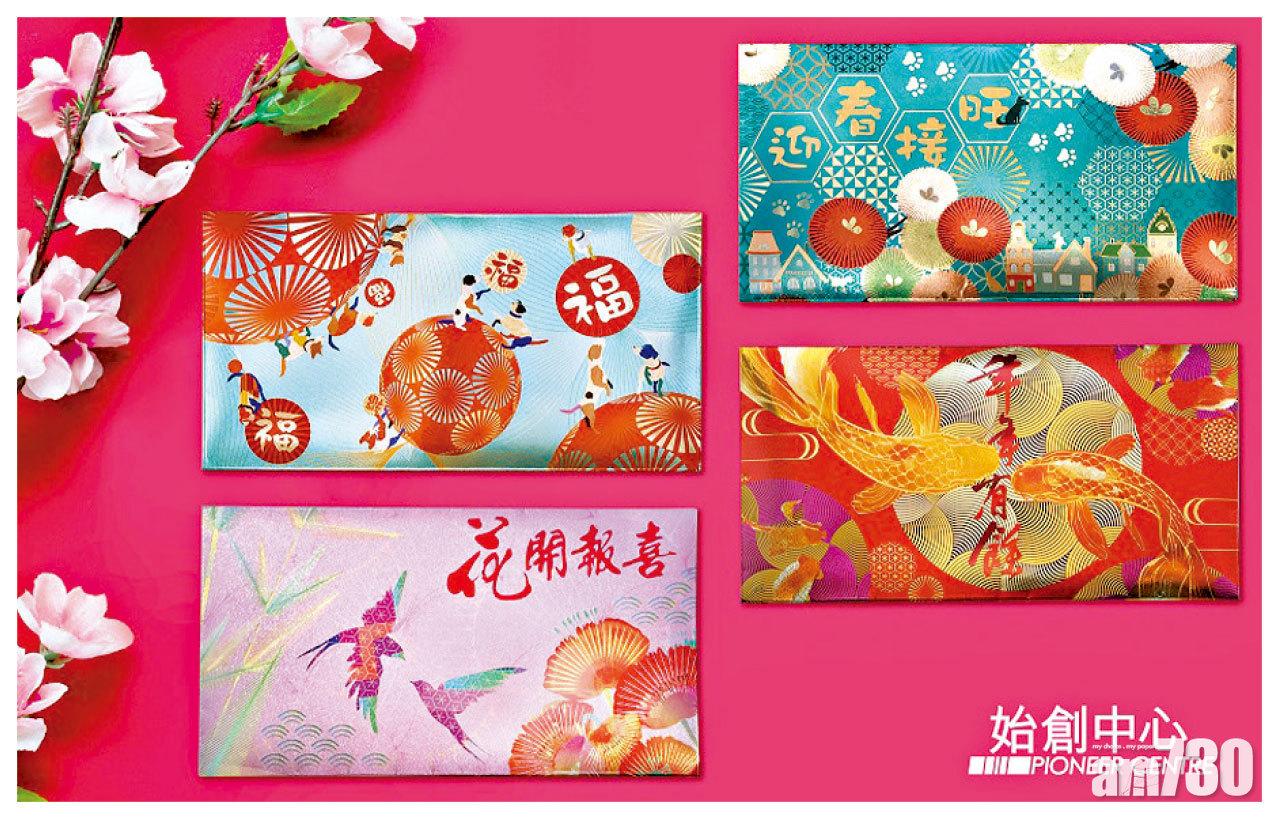 始創中心的好事成雙利是封,破格採雙面設計,一面傳統高貴,另一面則時尚型格,展現不同的祝福語。消費滿$200即可換領一套。