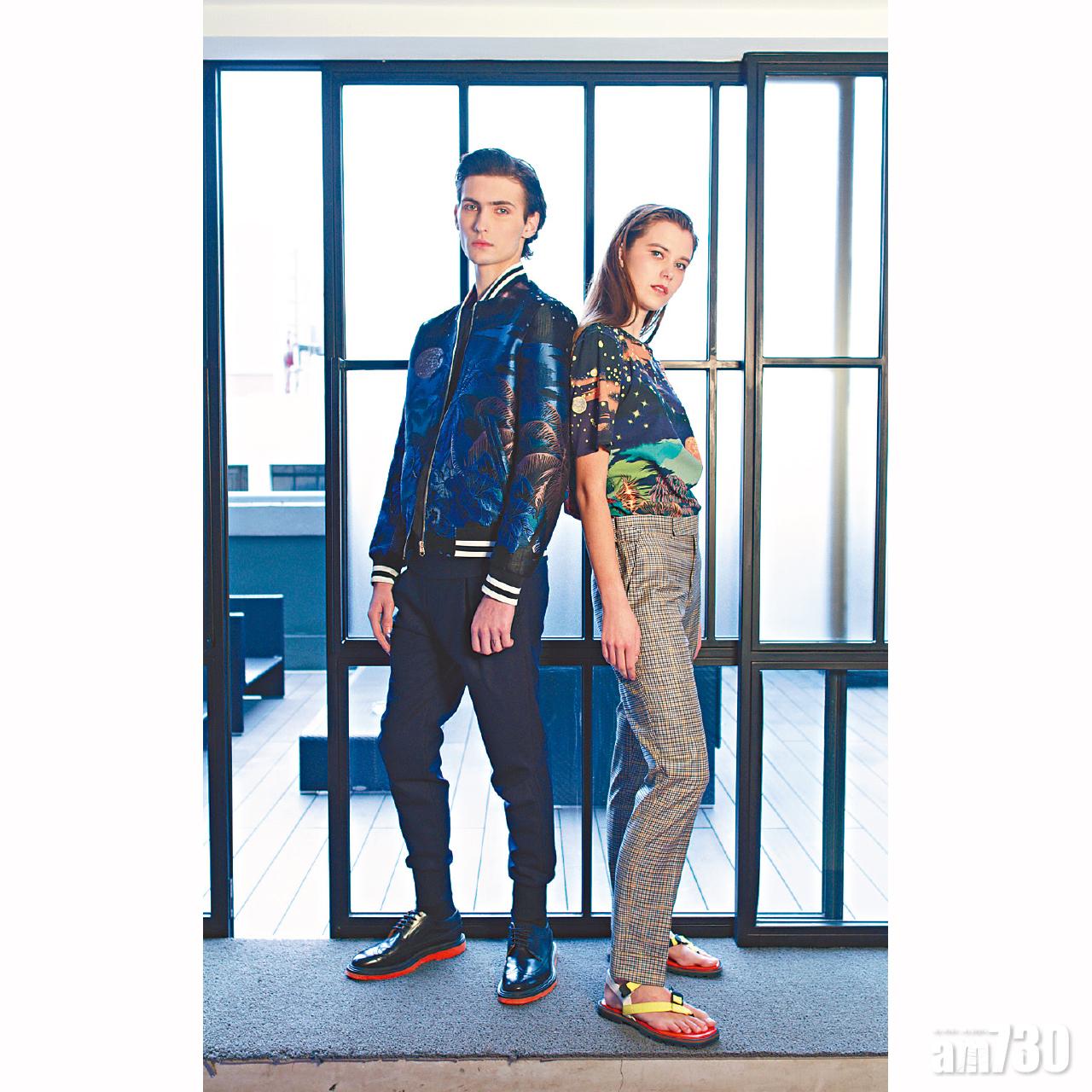 男女服飾的剪裁向品牌80年代的設計致敬,重現復古的方角領、低鈕門及方形肩膊。拼布連身裙以花卉圖案配上跳脫的夏季恤衫領,喬其紗吊帶裙則襯上日本鯉魚圖案。兩件頭起絨棉布女式西裝的印花襯裡亦注入新意,以反向印刷方式設計,令熱帶花卉圖案的色彩,外淺內深的逆向方式呈現出來。