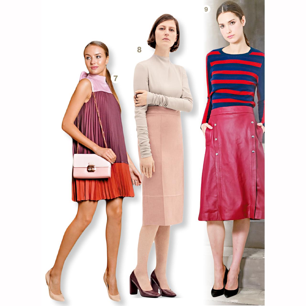 9. 不敗的橫間上衣£125 (約1,265港元)與飾有鈕扣的pencil skirt £295 (約2,987),櫻桃皮革夠晒搶眼!(a)