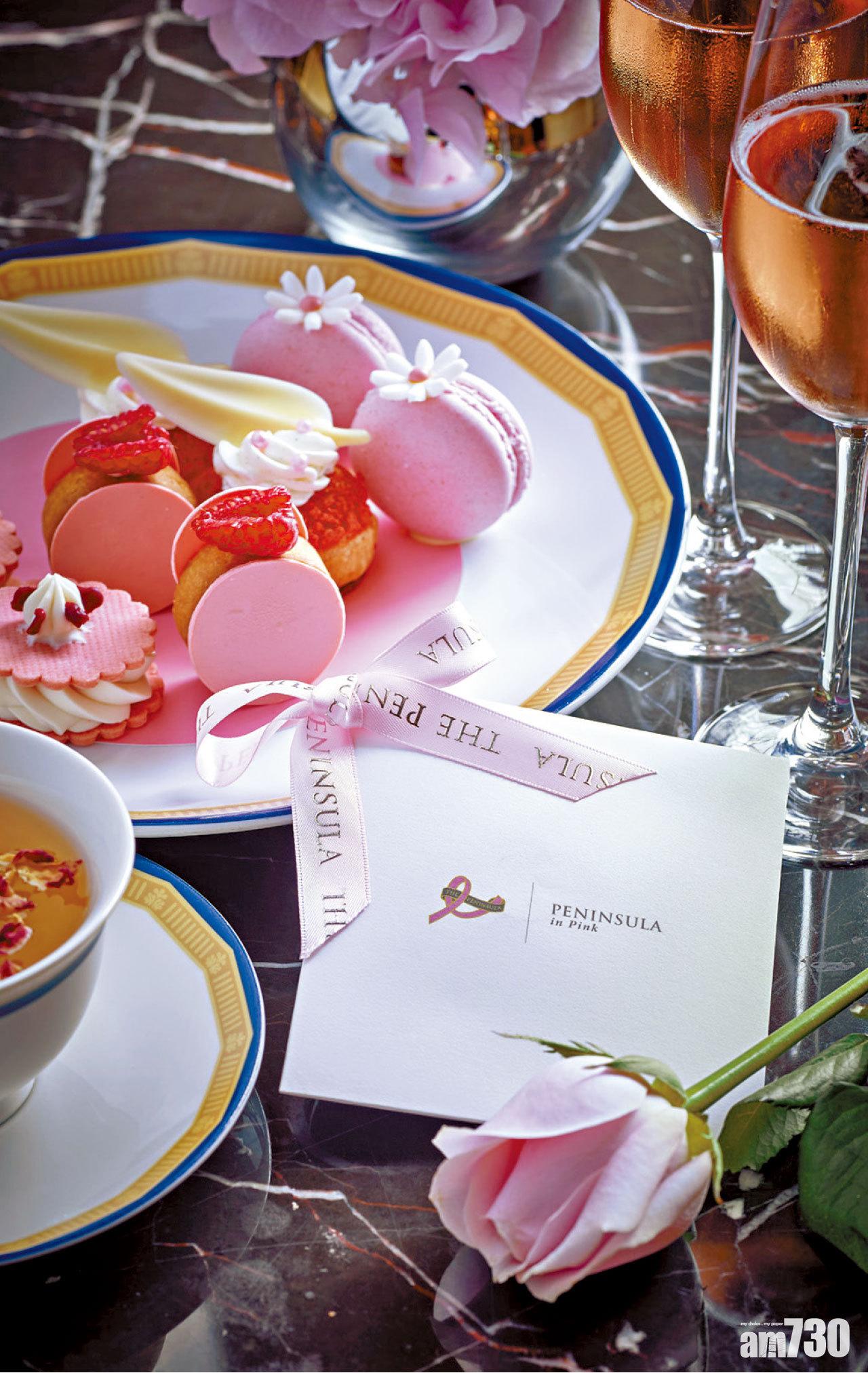 以粉紅色為主題的「乳癌意識推廣月」活動,將透過不同途徑喚醒大家對乳癌的認知。連續8年響應活動的半島酒店,亦於10月推出粉紅下午茶,酒店每售出一客,將會捐出$40予香港遺傳性乳癌家族資料庫。茶點披上粉紅新衣,可加配粉紅香檳,貫徹整個粉紅色主題。10月起每天供應。