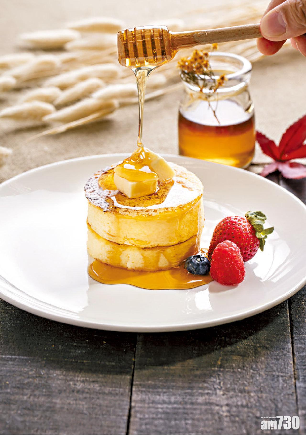 在夏末初秋之際,花月庭貼心推出以蜂蜜和野莓為主題的下午茶自助餐,為大家滋潤一下喉嚨。以成本較高的麥蘆卡蜂蜜配以大熱的日式梳乎厘班戟和新鮮雜莓,甜而不膩。而加入百里香蜂蜜的滑溜奶凍,有有陣陣蜜香,加上藍莓泡泡,層次分明,造型精緻,令人愛不釋手。10月5日起逢周末供應。