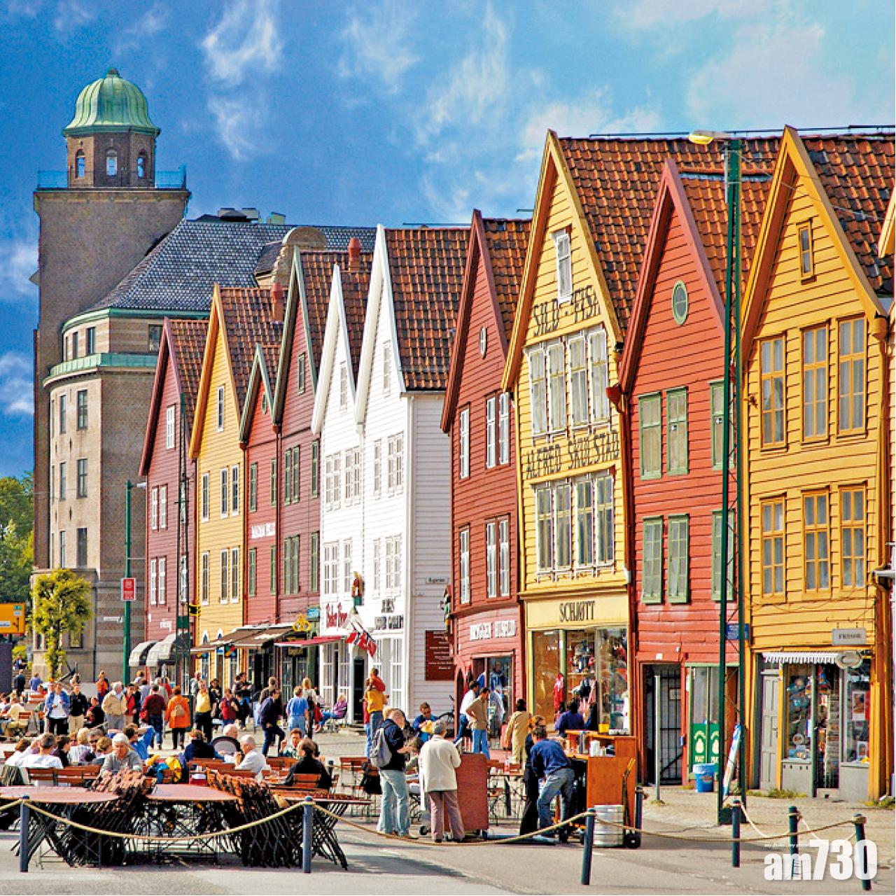 遊走北歐,常見到顏色鮮豔的小屋,部分城鎮人口稀少,尤其是湖區,更呈現一片安逸祥和的景象,令人嚮往。彩色木屋畫面,猶如童話故事中的場景,特別討人歡心,挪威第二大城市卑爾根(Bergen),山明水秀,海邊一排木建築,色彩繽紛悅目,率先成為焦點,無論是木屋背後的歷史故事,抑或是魚市場的鮮味海產,都輕易製造出大量話題,令每一位遊客留下快樂足印。