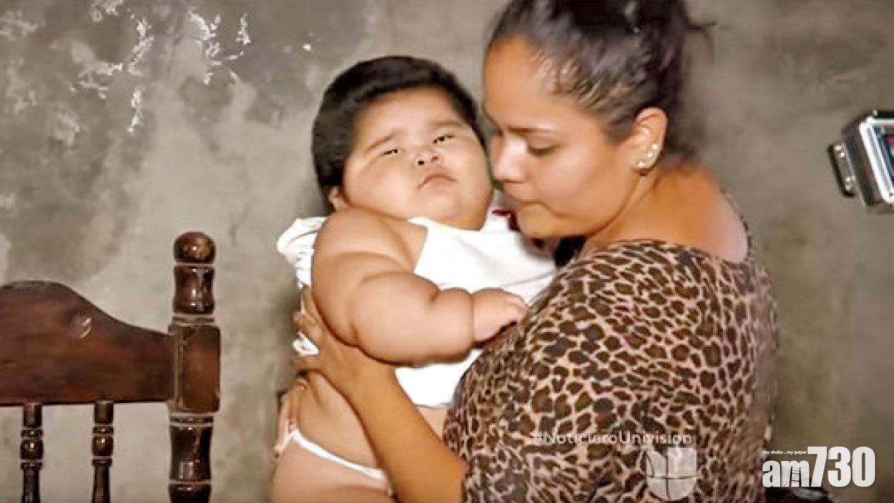 墨西哥男嬰Luis Gonzales出生時體重才7磅半,近半年來發福暴脹,現僅10個月大,體形直逼幼童,更要穿8歲孩子的衣服。母親(圖2)初時還以為「自己奶水太棒」,至近期才發現不對勁,估計罹患小胖威利症,令他瘋狂進食,並會引發心臟問題及腦部發育延遲。醫生考慮施以激素治療,一次注射費用已是父親的兩倍月薪。窮爸爸現於臉書開設捐款帳戶,寄望善心人士施援。