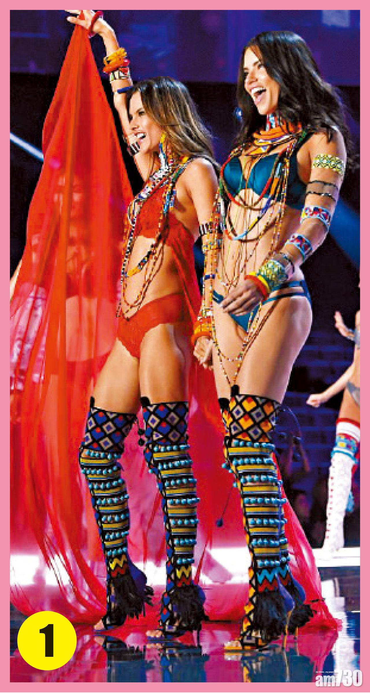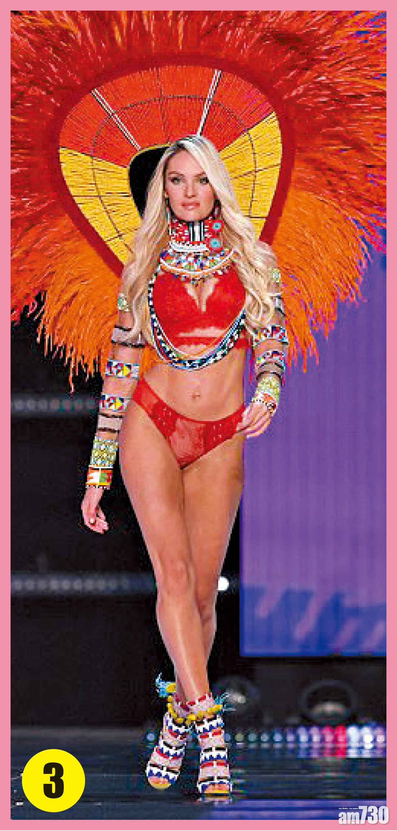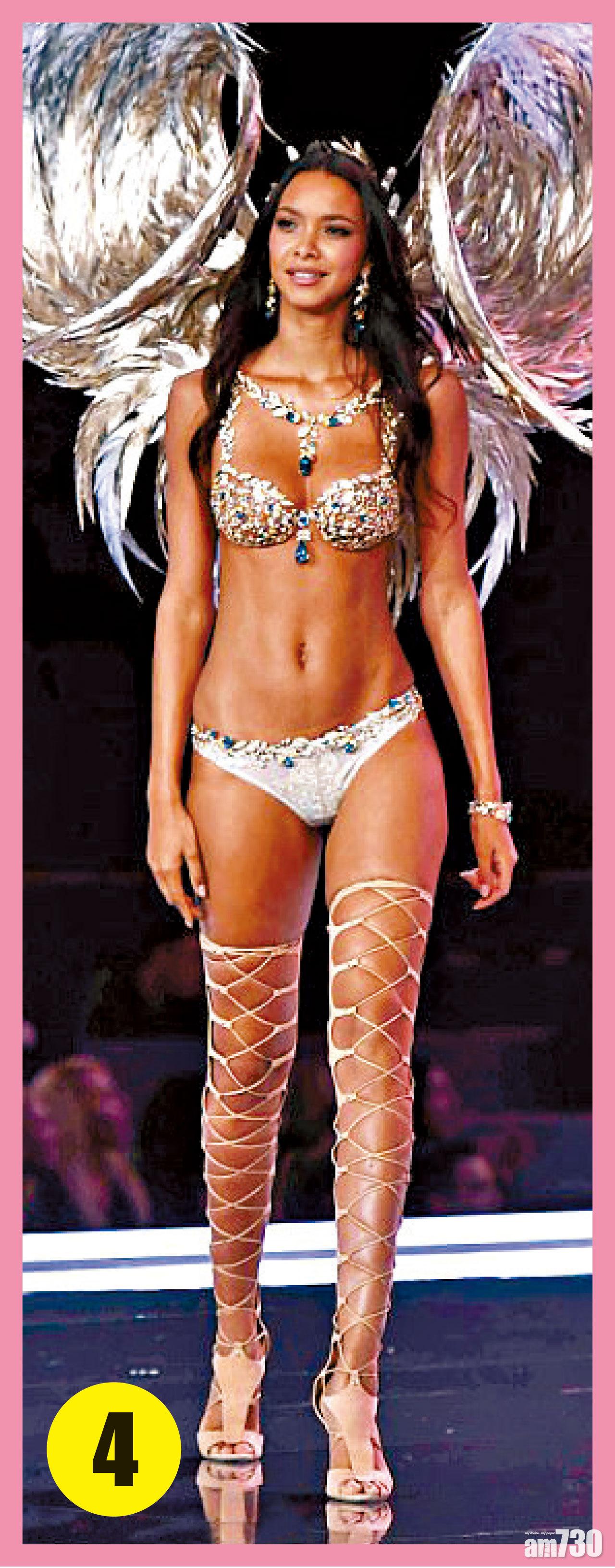 矚目天使要數合作長達17年、宣布退任的巴西超模Alessandra Ambrosio(36歲,圖1左),她希望多花時間在9歲及5歲的兒女身上,這是最後一次當「秘密天使」;獲選最有價值天使的Adriana Lima(圖1右),更是18年的資深天使。鋒芒畢露的則數Bella Hadid(21歲,圖2),在台上忘形至乳暈半露,被取笑是洩密天使。Candice Swanepoel(29歲,圖3)堪作新媽媽榜樣,誕下寶寶不久即極速回勇,肚皮不遺半點痕跡。Lais Ribeiro(27歲,圖4)是今年的寶石天使,穿上價值200萬美元的金鑽bra,足見其超然地位。戴上寵幸光環的Romee Strijd,同樣豔光四射(圖5)。倒霉的要數中國模特兒奚夢瑶,在機會難得的盛典上摔一大跤(圖6),大忌。