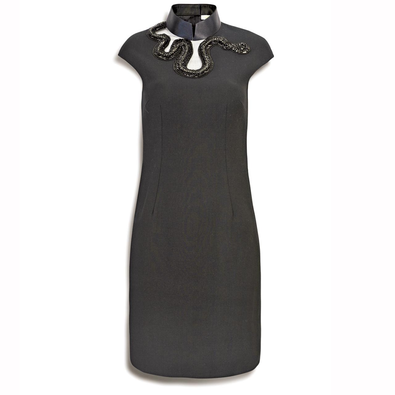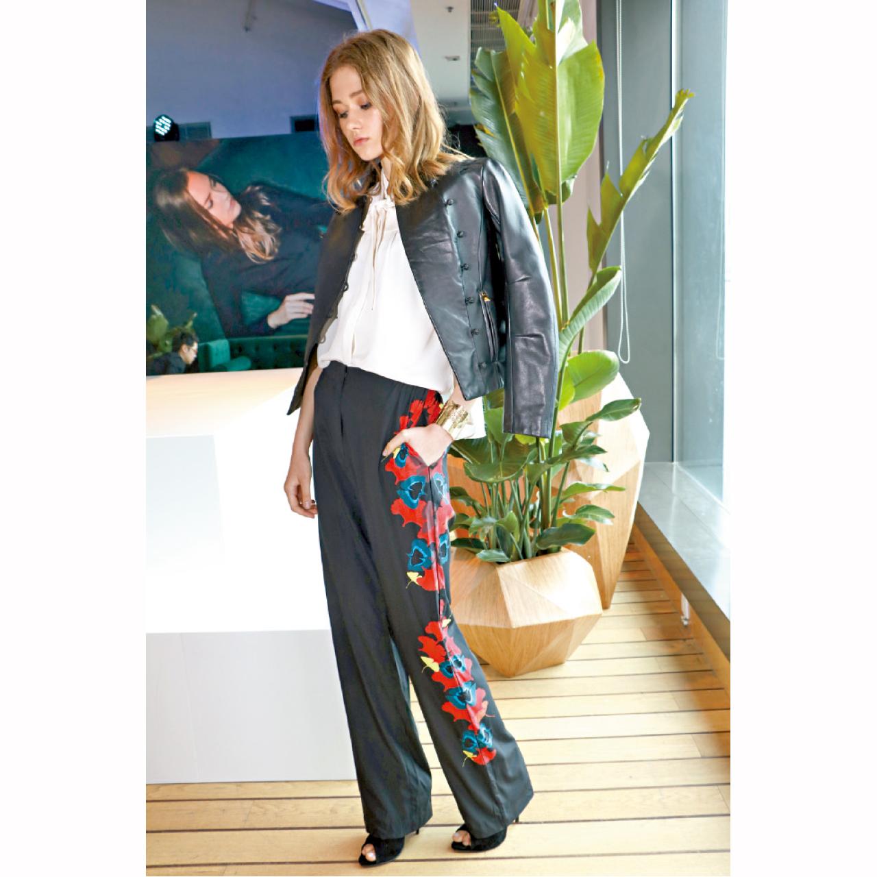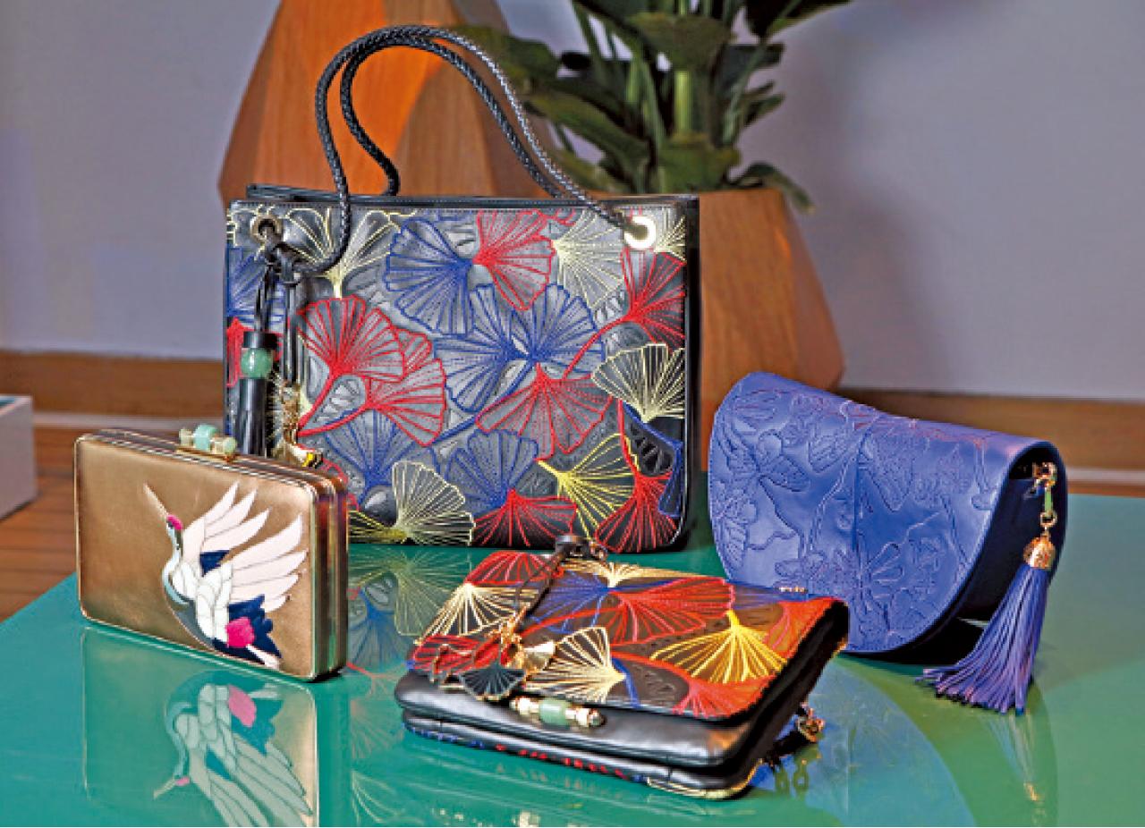 鮮豔的連身裙綴以閃閃發光的扇形銀杏葉圖案,無論是復古的旗袍、喇叭或是A-line的剪裁,均滲透著現代風格的自信美。至於鶴的設計元素以各種形態,展現於不同衣飾和物料上,如金屬銅色的軟皮革,綴有立體的鶴圖案,演繹於高腰A-line半截裙及高領喇叭裙等。