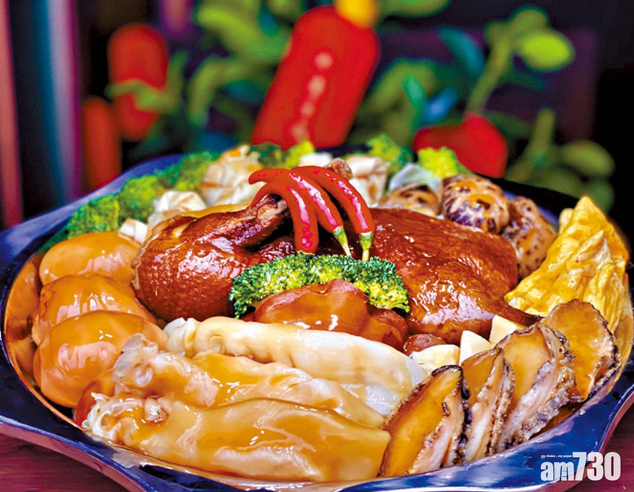 有冇試過上海式盆菜?夜上海(九龍店)就推出全新「喜氣洋洋迎金牛」盆菜送鼠迎牛,以十款精選上海經典及喜慶的上乘食材入饌,與客家式截然不同,包括發財元蹄、原隻鮮鮑魚、花膠、黃金蛋角、上海熏蛋、樟茶鴨、滬式醬蘿蔔、花菇、鮮冬筍及百頁結,寓意來年十全十美。
