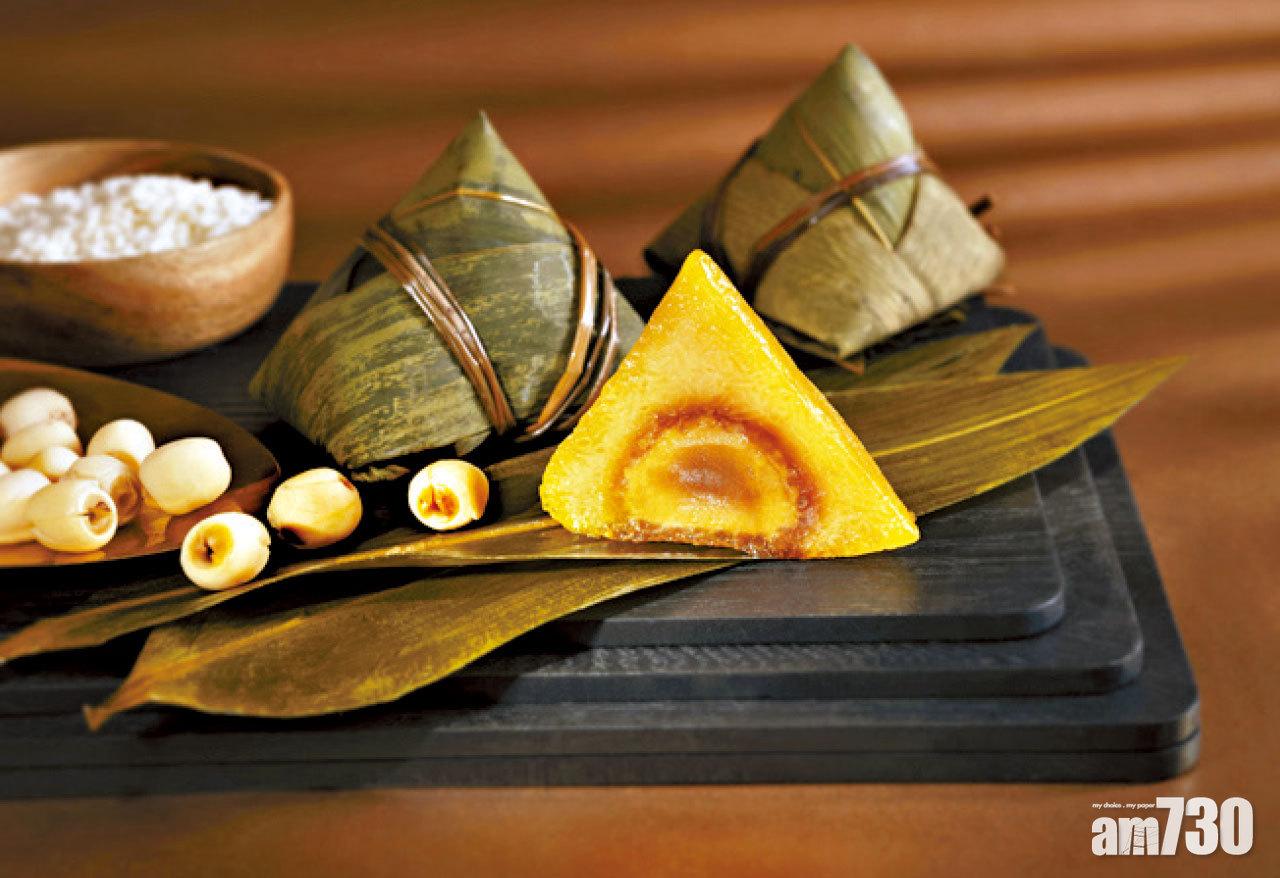 香港港麗酒店中菜食府金葉庭精製兩款傳統手工糯米粽,由中菜主廚尹鐘耀師傅親自操刀改良,包括「瑤柱裹蒸粽」,荷葉內裹滿浸泡優質糯米、原隻瑤柱、油心鴨蛋黃、綠豆及冬菇;而香甜怡人的「迷你蓮蓉梘水粽」小巧玲瓏,蓮蓉餡料軟糯香甜,在豐盛的節日聚餐後作為甜品最好不過。│2822 8870 金葉庭│2521 3838 餅店