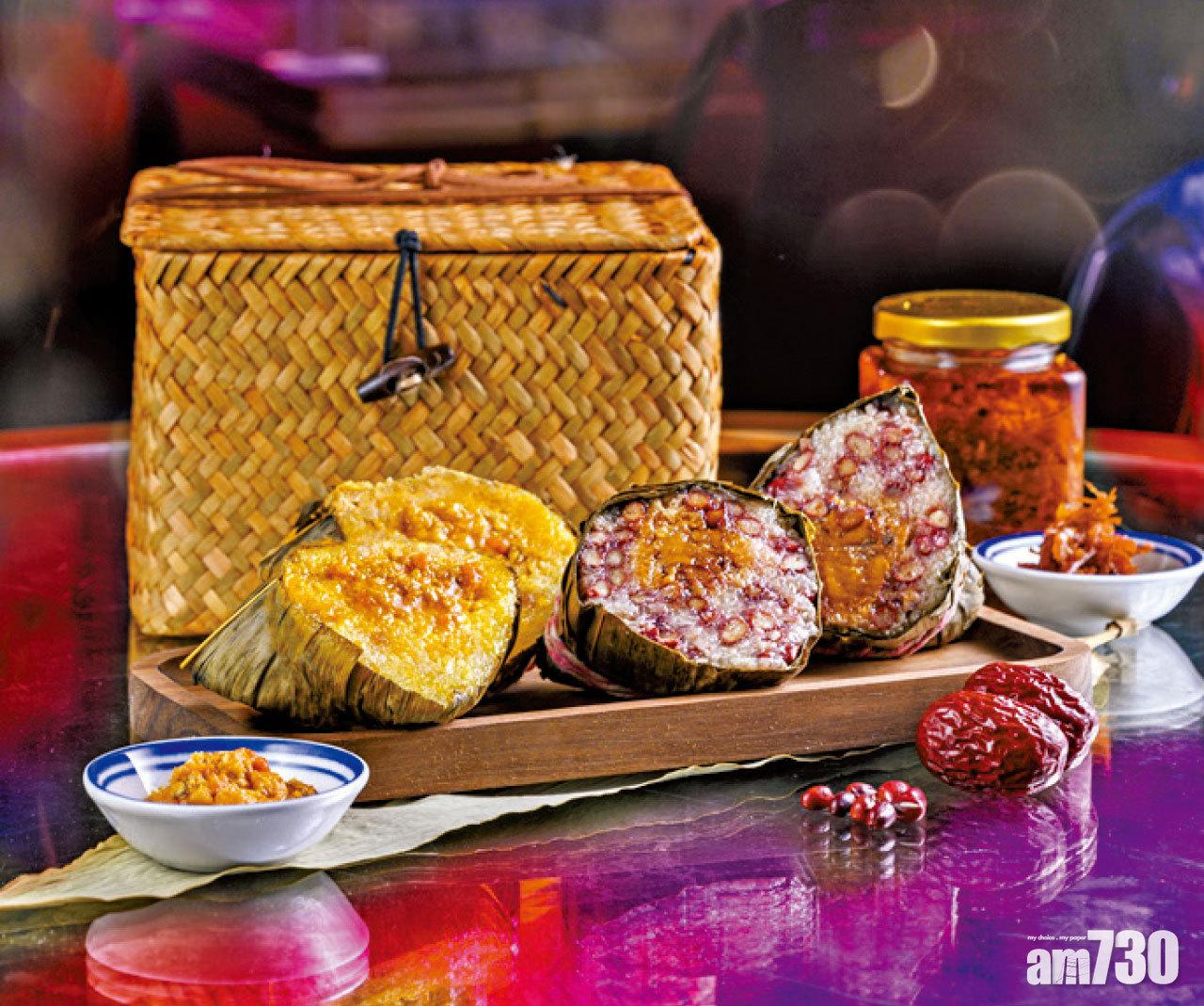 時尚蟹麵專門店上三兩(Sexy Crab)夥拍韓國甜品百味堂,精心打造「上三兩 X 百味堂──端午禮盒」,以復古中式藤籃包裝,包含三兩首創的黃金流心蟹粉粽,用上的蟹黃醬以公蟹粉、母蟹粉及蟹肉調製,搭配傳統鹹肉粽必備的鹹蛋黃,更見鮮香細膩,另有百味堂招牌紅豆紅棗蓉粽、上三兩自家調配的秘製瑤柱XO醬及入口自韓國的韓國米糖漿。$498/套 上三兩│6655 7629