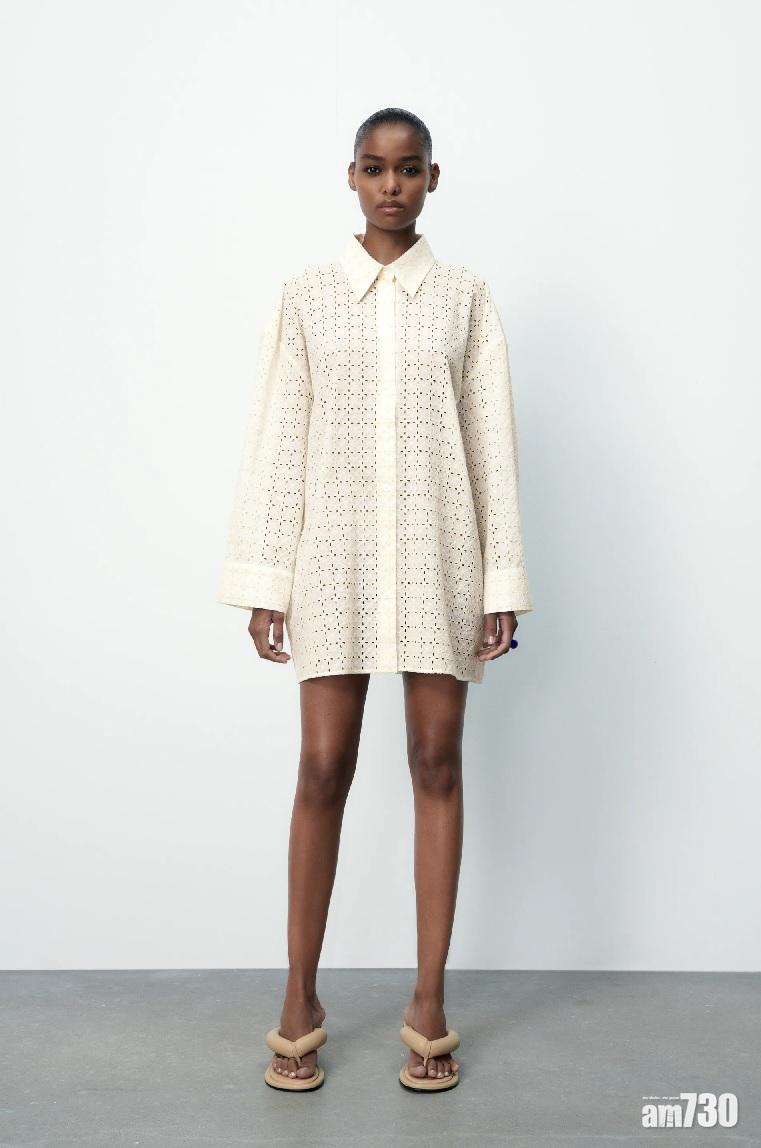 OVERSIZE SHIRT WITH CUTWORK EMBROIDERY,原價$499, 現售$299