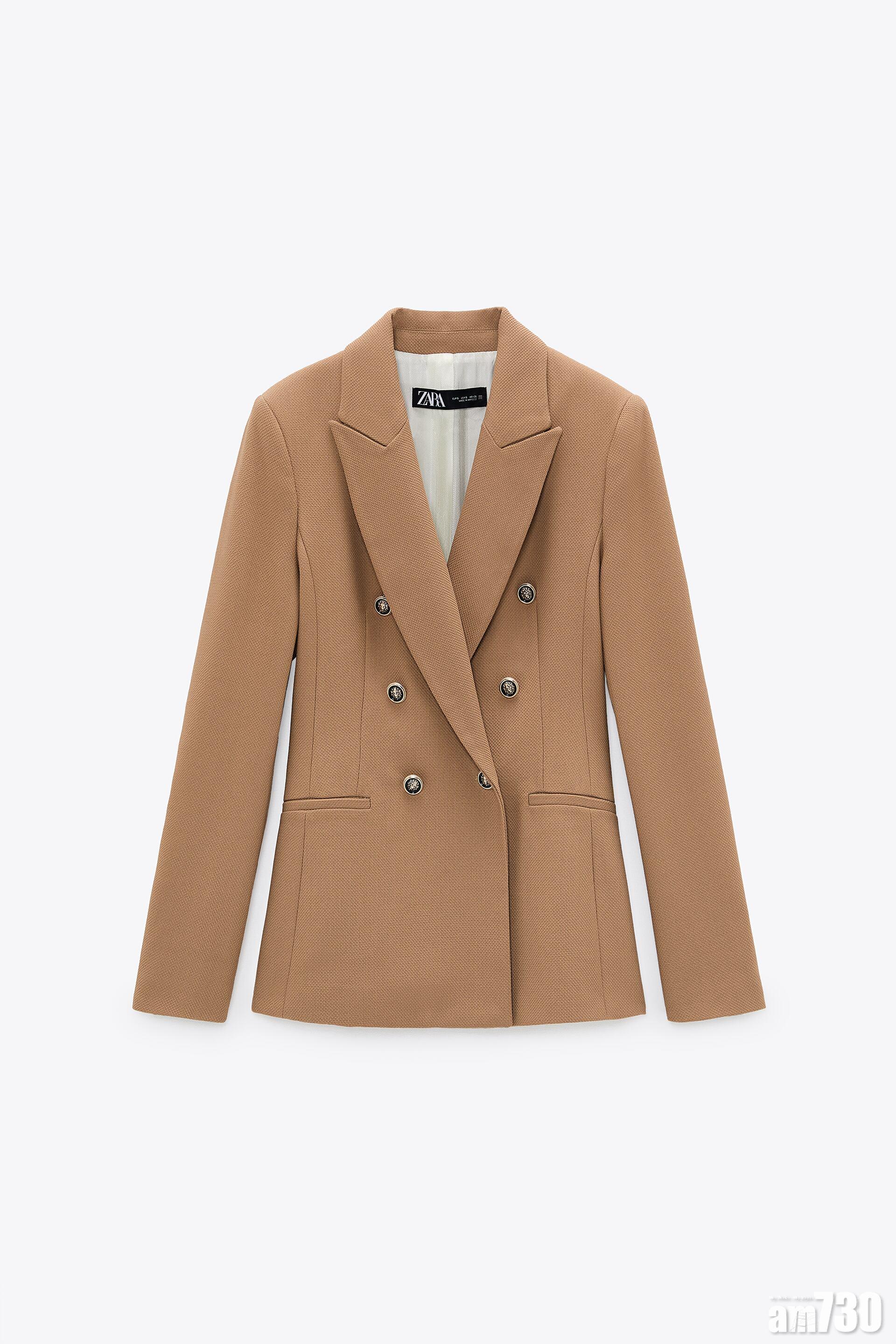 DOUBLE-BREASTED PIQUÉ BLAZER,原價$599, 現售$399