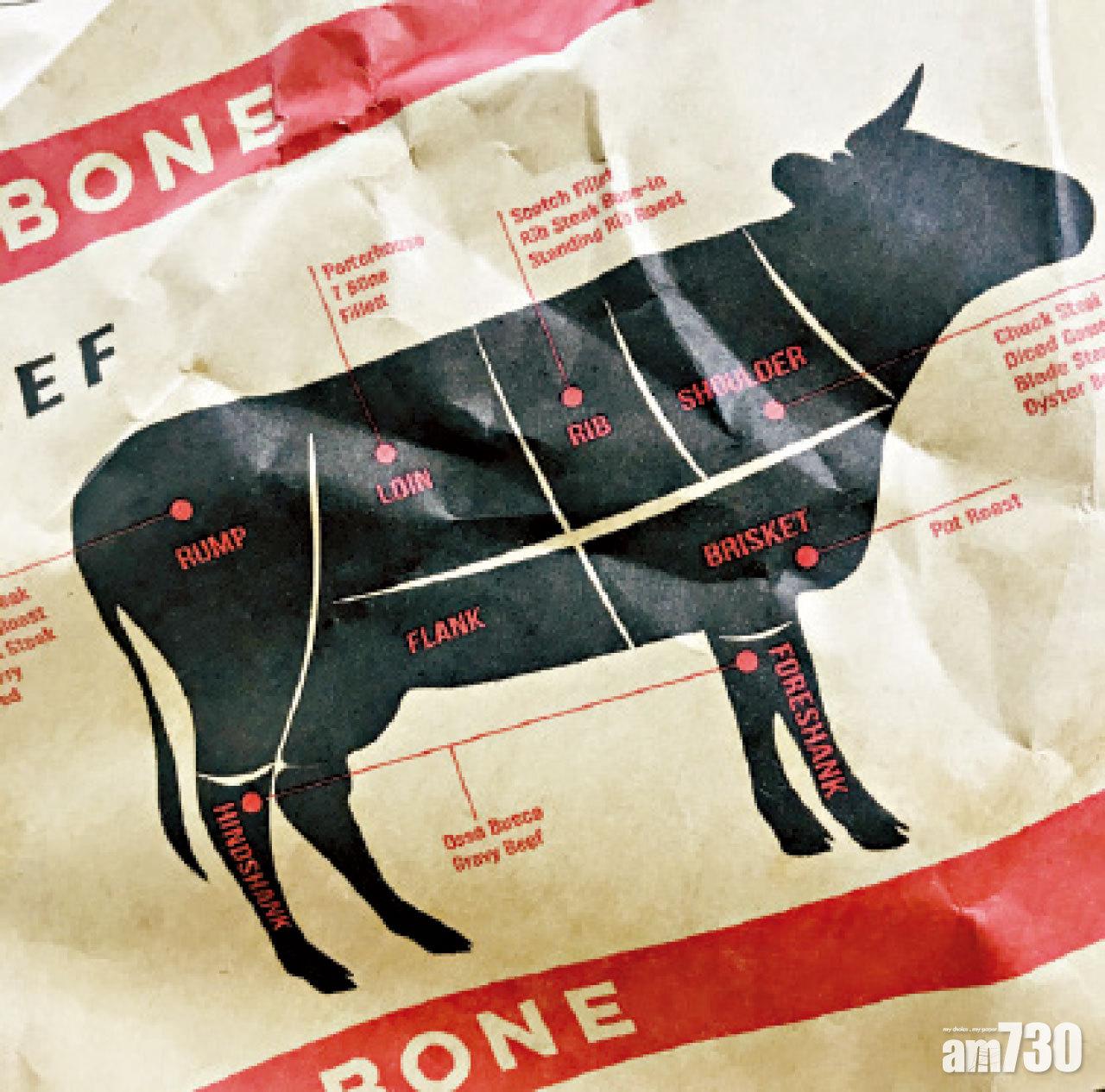 Feather & Bone招牌burger包裝紙教你認住牛隻不同部位,更有翻叮翻焗貼士。