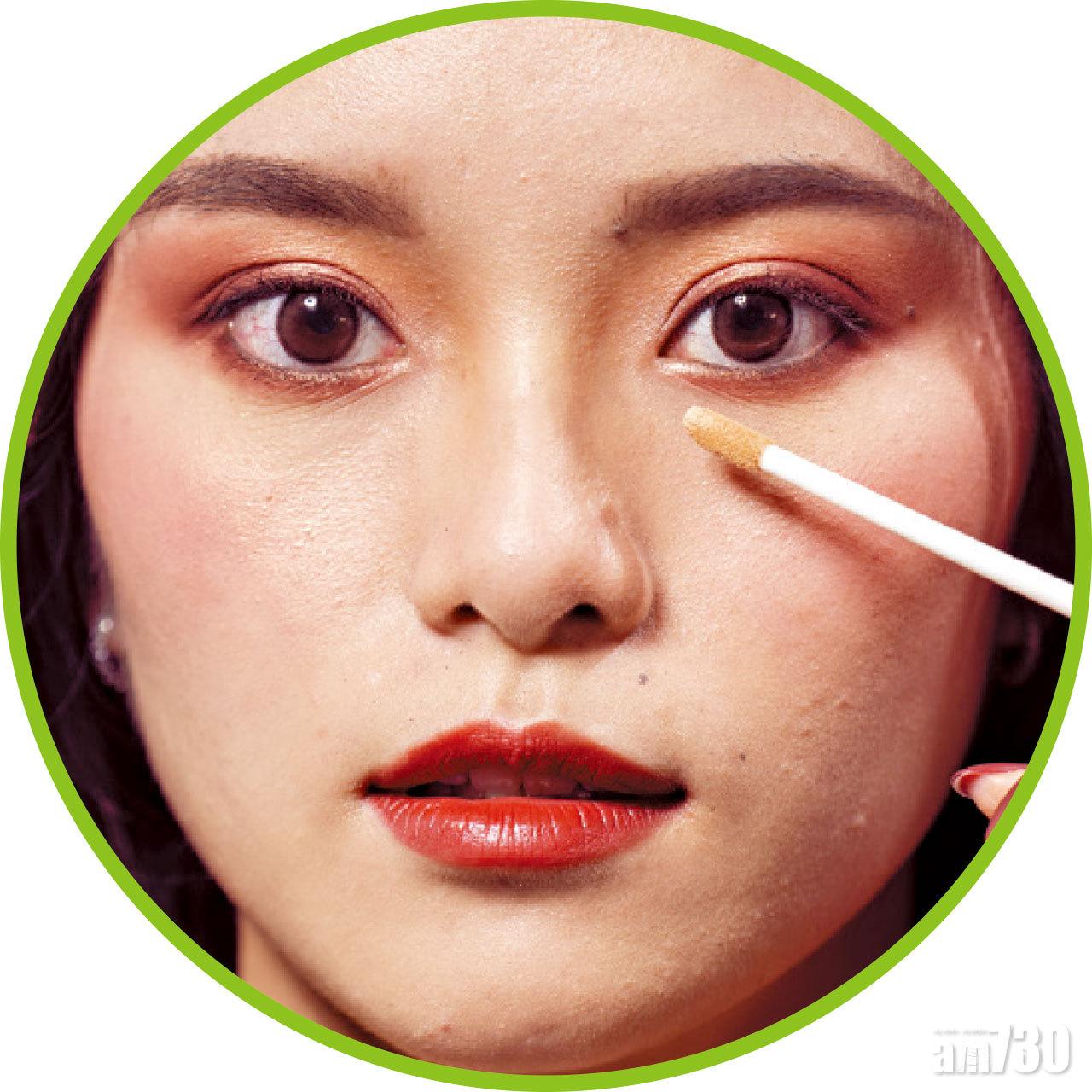 ❶ 光亮柔滑遮瑕霜除了可以掩蓋瑕疵,更可作提亮之用。在塗上底妝後,在下巴、鼻樑等位置,用手指點上遮瑕霜作highlight,達修容之效。