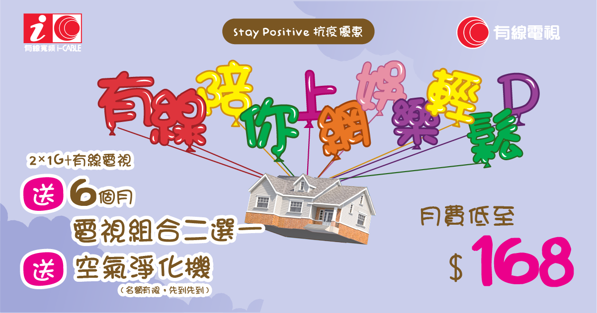 受到疫情影響,大家都習慣宅在家。有線電視及香港開電視,推出《有線‧香港開電視陪你 在家開心啲》計劃,提供涵蓋防疫資訊、社區關懷、運動健康、家居煮食、影視娛樂、網上娛樂、兒童學習等不同節目。此外它們更推出期間限定「抗疫優惠」,首2,000名新用戶可享獨家優惠,月費低至$28,平均一日$1都唔使!