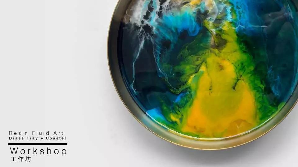 體驗樹脂流體藝術,並製作您自己的特殊手工樹脂流體藝術黃銅色盤和杯墊、雙層時鐘及杯墊、雙層杯墊及香薰石。