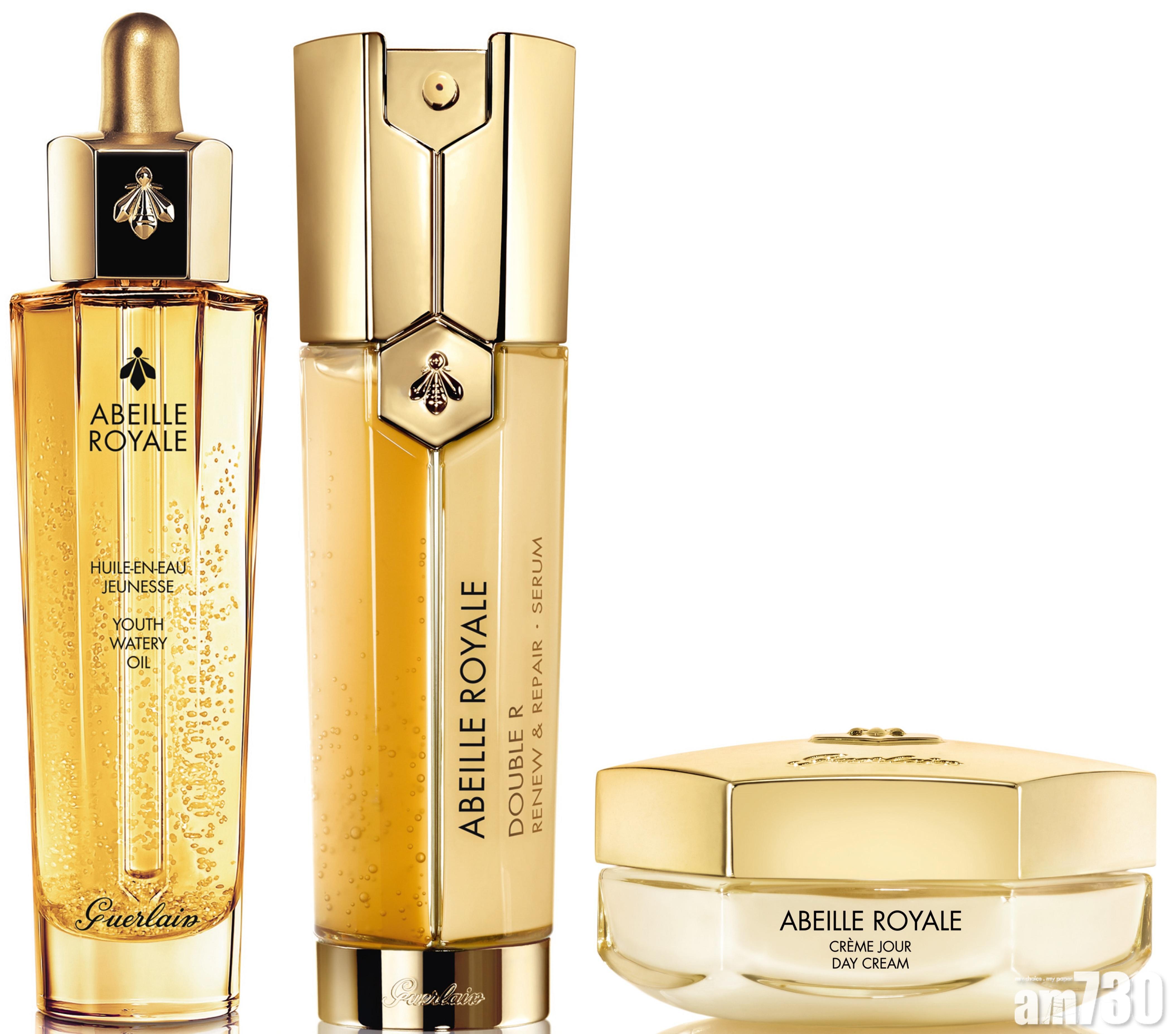 包括:殿級蜂皇再生修護雙效精華50ml、水凝黑蜂活肌蜜50ml及緊緻日霜50ml