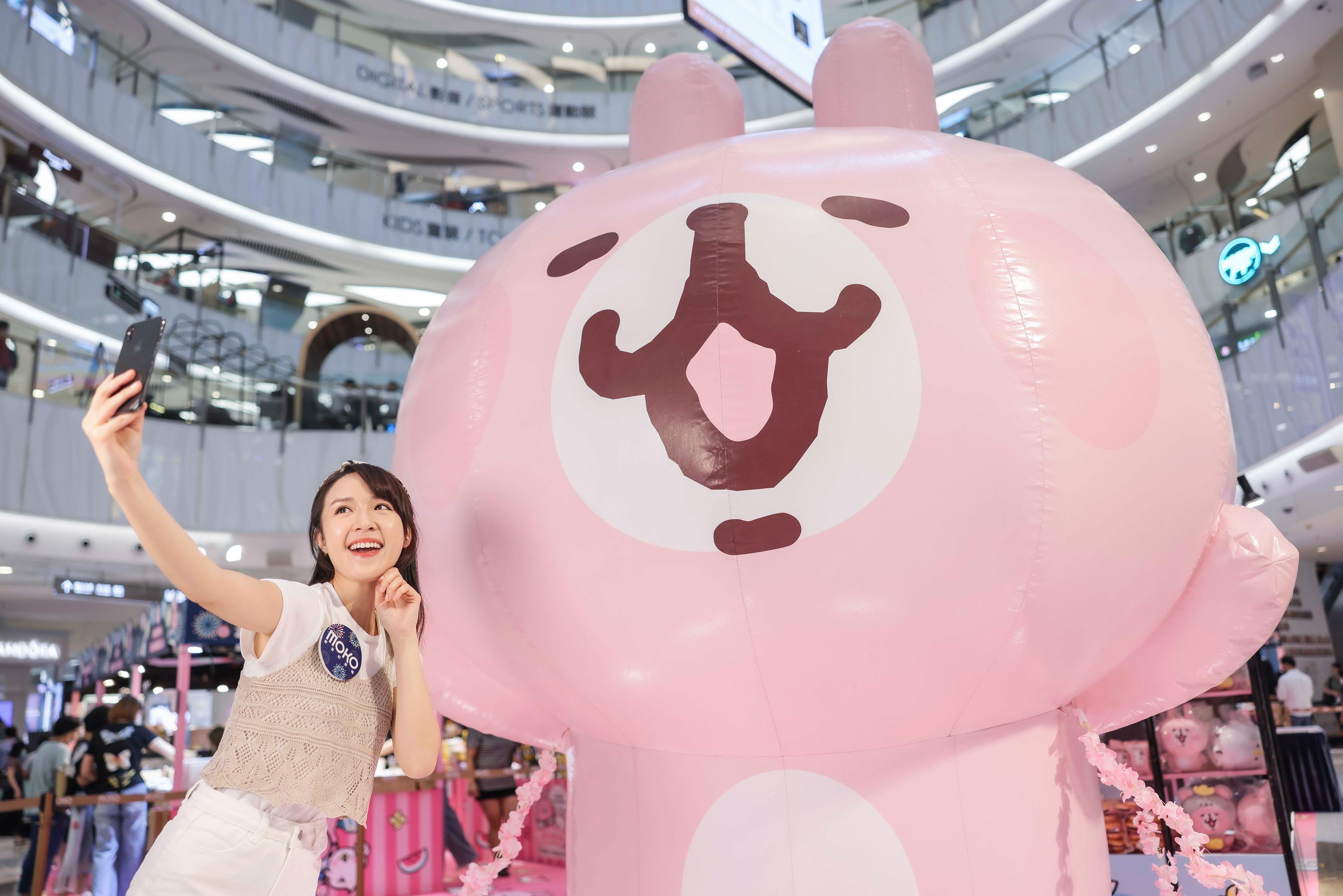 P助與粉紅兔兔的打卡裝置,趣緻表情搭配可愛動作,遍布商場中庭及1樓。位於中庭的3米高粉紅兔兔裝置最為矚目,它不單舉起雙手迎接粉絲們,瞇眼張嘴微笑的呆傻表情,令人忍不住打卡。