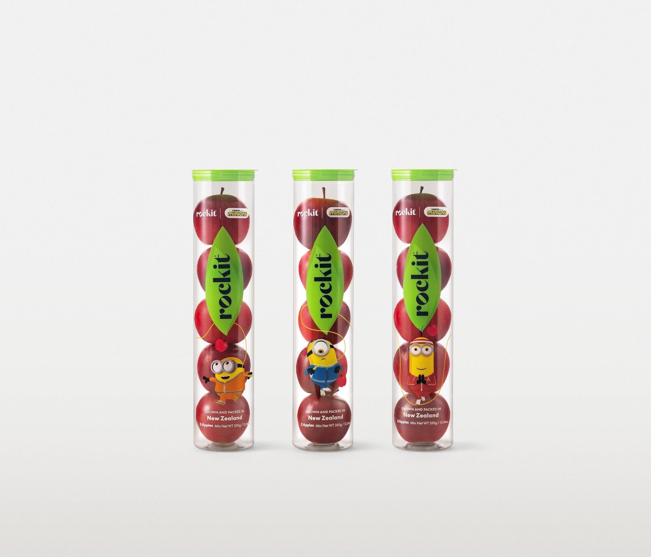 來自紐西蘭、經自然培育無上蠟兼超爽脆的蘋果界新星Rockit樂淇蘋果,最近聯乘Minions,藉著萬眾期待的動畫鉅獻《迷你兵團2》即將在港上映,即日起推出樂淇®蘋果 X Minions限量特別版筒裝(五個蘋果),夥拍穿上可愛運動服的「迷你兵團」主角BobKevinStuart打造三款特別版,更即日起推出限量禮盒裝,包括樂淇®蘋果 X Minions特別版兩筒及Minions單眼頭帶一條(隨機附送小童或成人尺寸),將於全港超過400家超級市場發售。