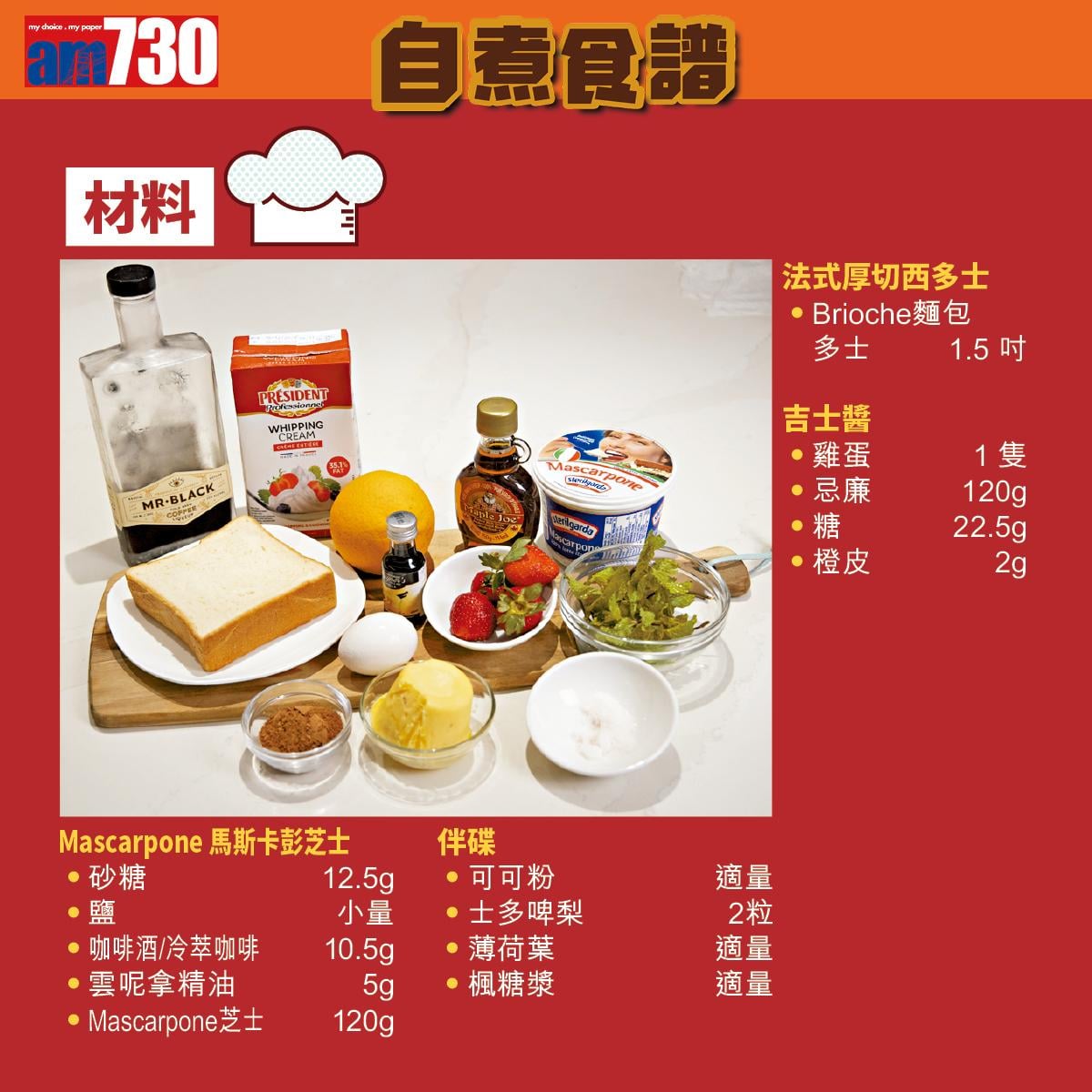 西多士食譜|焦糖法式厚切西多士材料