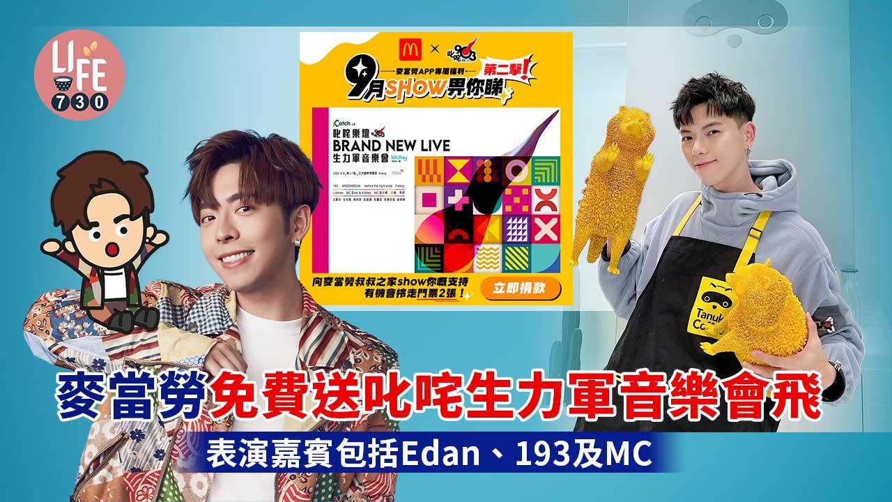 麥當勞免費送叱咤生力軍音樂會門票 表演嘉賓包括Edan、193及MC