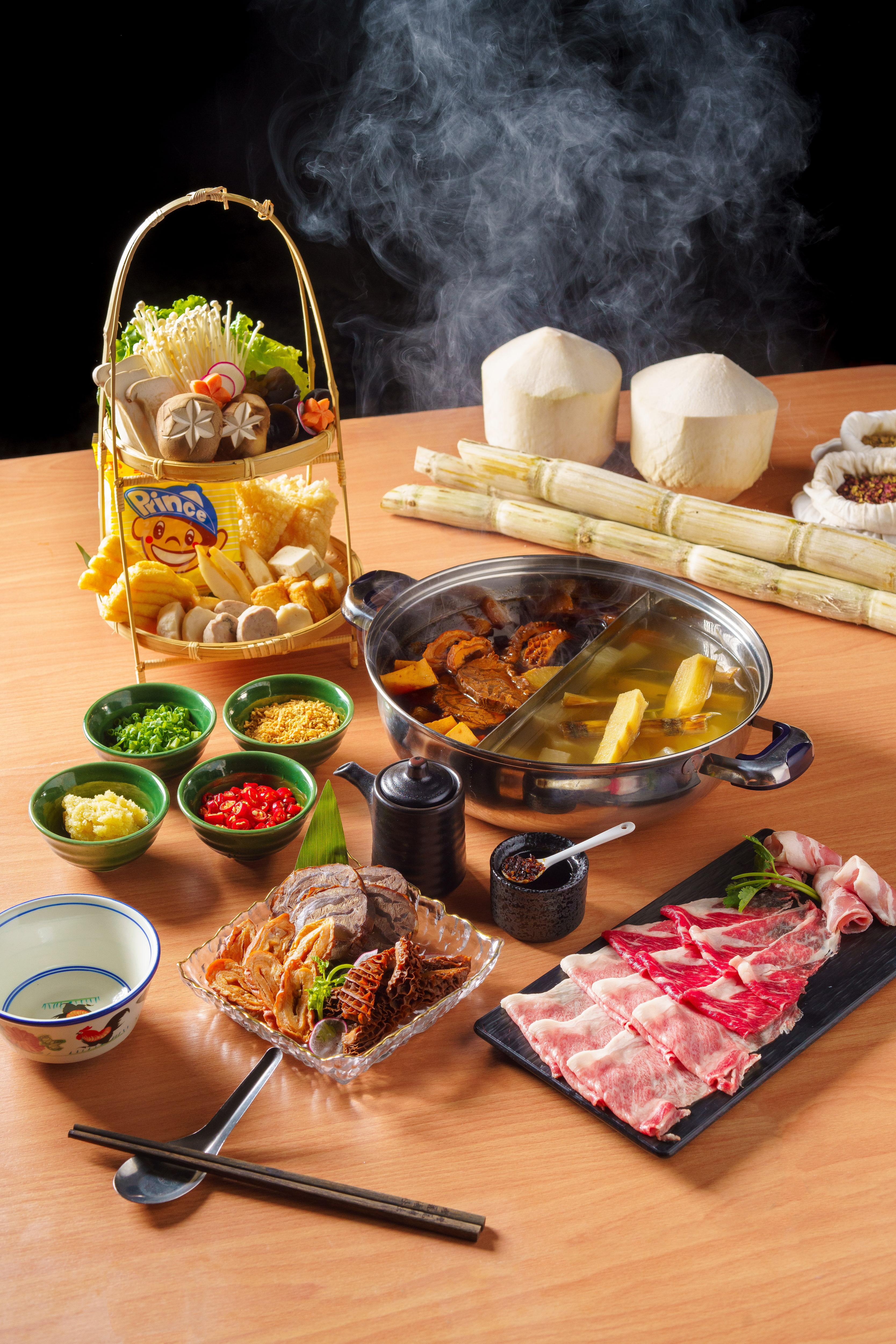燈籠滷味T.P.E聯乘公利真料竹蔗水,推出中環店限定火鍋套餐。