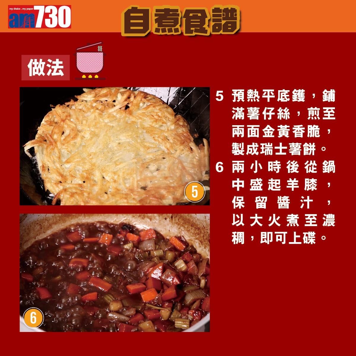 自煮食譜|紅酒燴羊膝配瑞士薯 薯餅金黃香脆 羊膝啖啖肉好滋味!