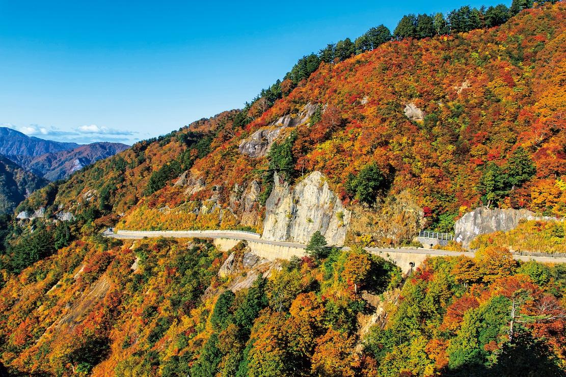 黑部峽谷被譽為日本第一深V字型峽谷,一年四季都有各自風光,是連日本人都喜歡的熱門旅遊景點。黑部峽谷鐵道小火車行駛於黑部峽谷的宇奈月站至櫸平站之間,單程約1小時20分鐘,秋季來訪,除了可以飽覽黑部峽谷的壯闊景色,火車更會被漫山紅葉包圍,畫面震撼。此外,沿途更會經過宇奈月湖上的丹紅鐵橋、黒薙河上高60米的後曵橋、賞楓勝地錦繡關等等,一次過滿足遊客多個願望,攝影發燒友必訪!