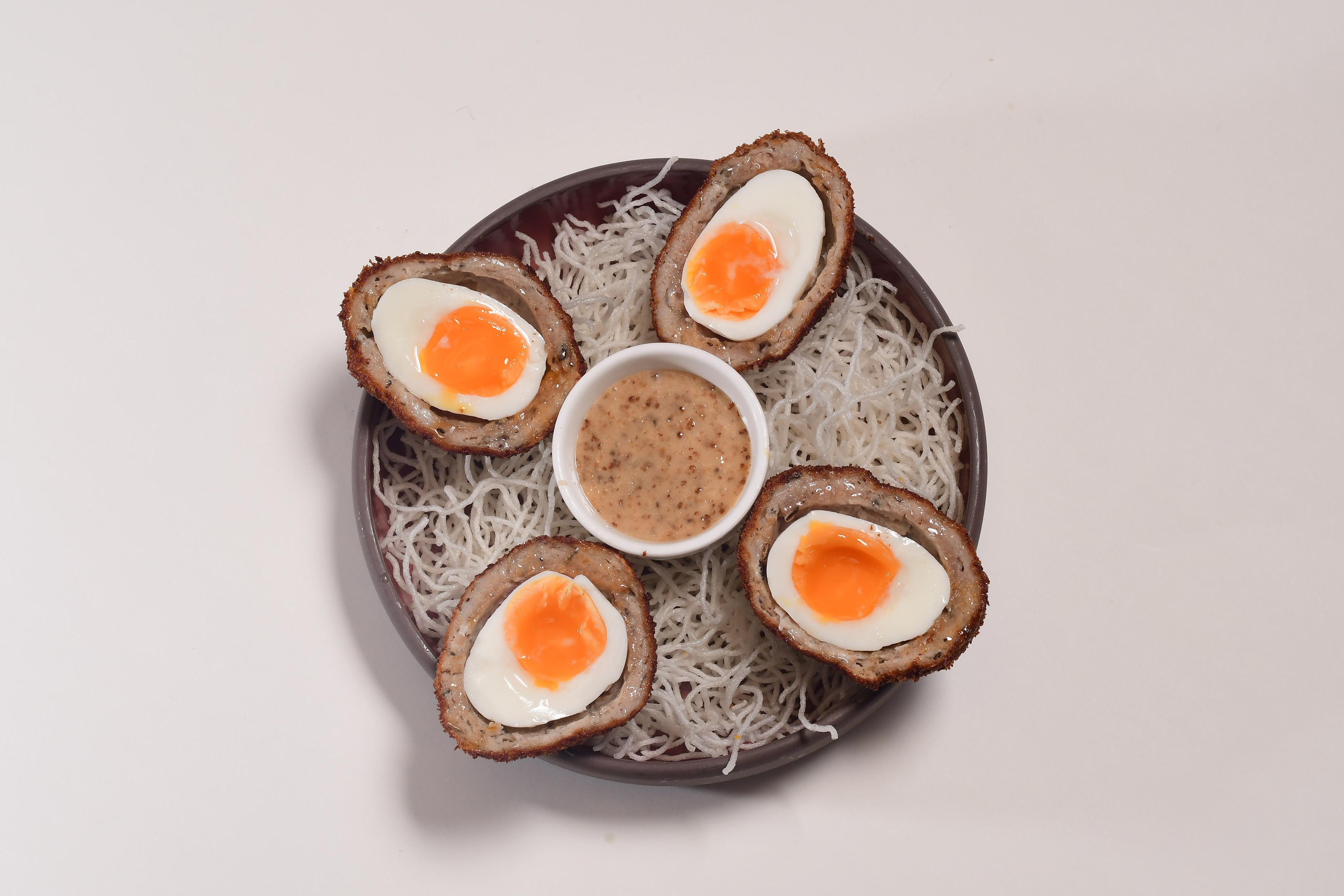帝苑酒店餐廳不少,其中較低調的J’s Bar Bistro一向是Happy Hour的好選擇,不過這裡除了飲酒外,其實也是餐廳,一向以供應串燒等食物為主打,近日新增了不少英倫經典菜,絕對可以Happy Hour直落食晚飯。當中,炸魚薯條當然有供應,但更喜歡的是傳統的牧羊人派及英式炸雜肉腸雞蛋配蜜味芥末醬,前者是沒有用麵粉及酥皮,只以薯仔肉及蔬菜焗成的薯蓉批,高湯炒過的肉搭配軟滑的薯蓉,很適合配杯啤酒。而炸雜肉腸雞蛋即是Scotch Egg,以香肉包著熟蛋同炸,外酥內軟滑,適合配杯紅酒,主食則可選脆芝士龍蝦通心粉,一個脆脆炸球內是彈牙又帶芝士香滑的龍蝦肉及通粉,不同一般焗通粉,更香口惹味。