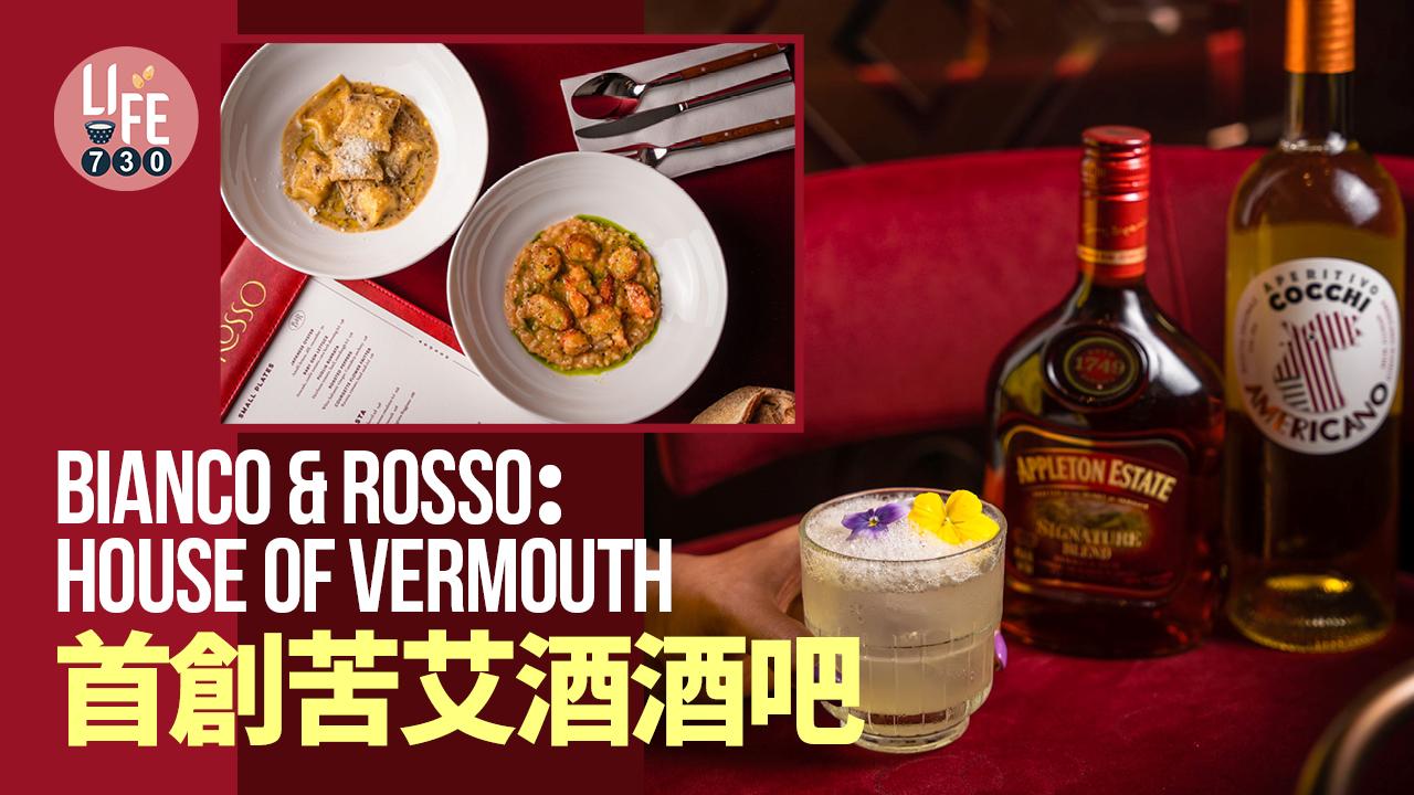 位於中環的BIANCO & ROSSO:HOUSE OF VERMOUTH,是香艾酒酒吧,提供多款苦艾汽酒、招牌雞尾酒、季節限定的「Hall of Fame」(名人堂)類別、以及多款雪利酒、阿瑪羅、波特酒、沙拉和苦艾酒等。「Aperitivo Hour」(開胃酒時間)於每天下午5 7 時供應,亦提供汽酒、球雞尾酒和葡萄酒,只需港幣$80起。此外,餐廳提供多款美食,主菜「Aquarello Risotto」,是手工意大利飯伴波士頓龍蝦和蘿蘿蔔油;招牌菜式「Whole Three Yellow Chicken」(三雞全雞)便配以自家製苦艾酒雞醬,配搭令人驚喜。