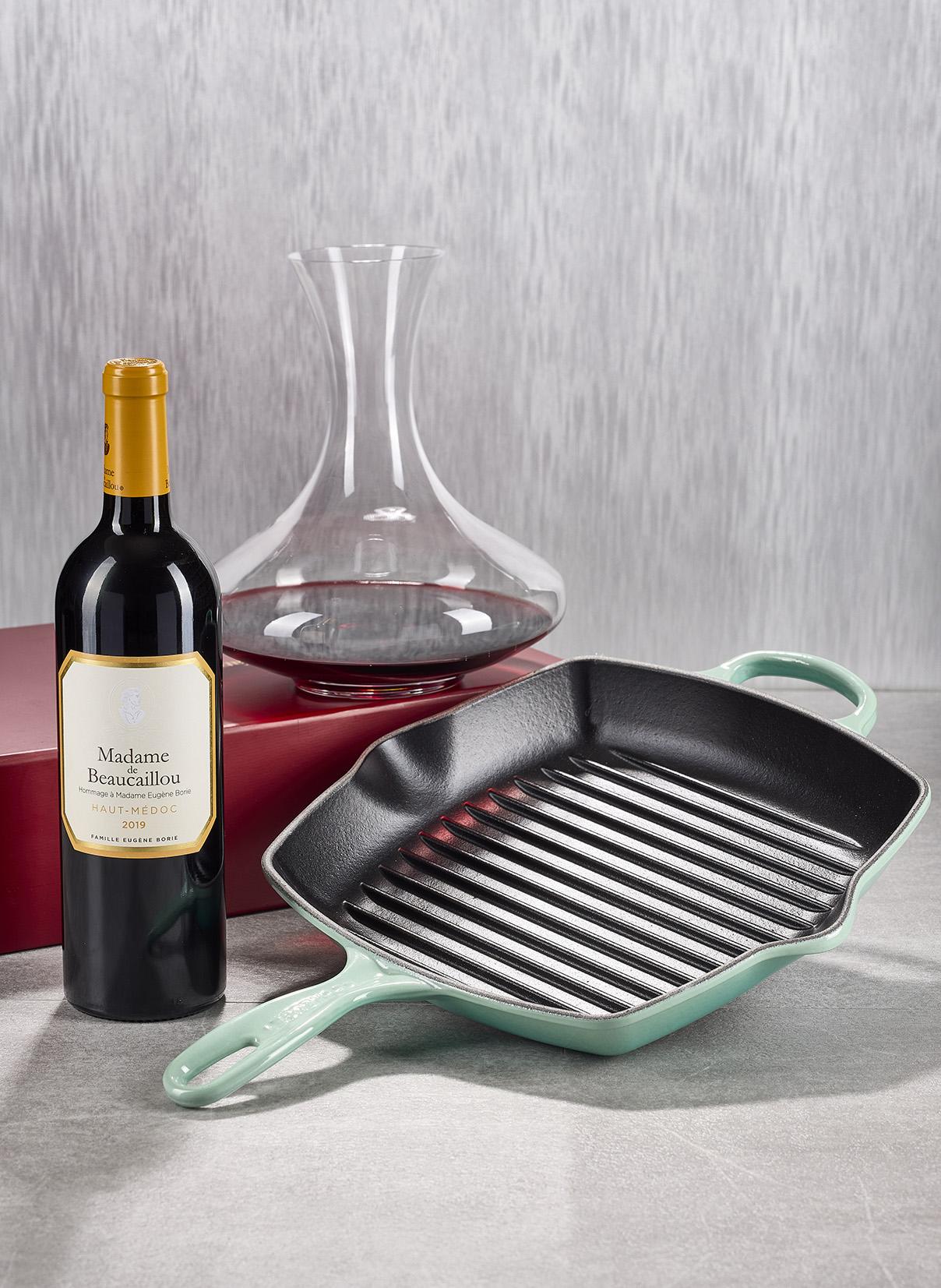 於屈臣氏酒窖購買滿$14,000可獲贈法國品牌Le Creuset的「正方形連手柄琺瑯鑄鐵燒烤盤」