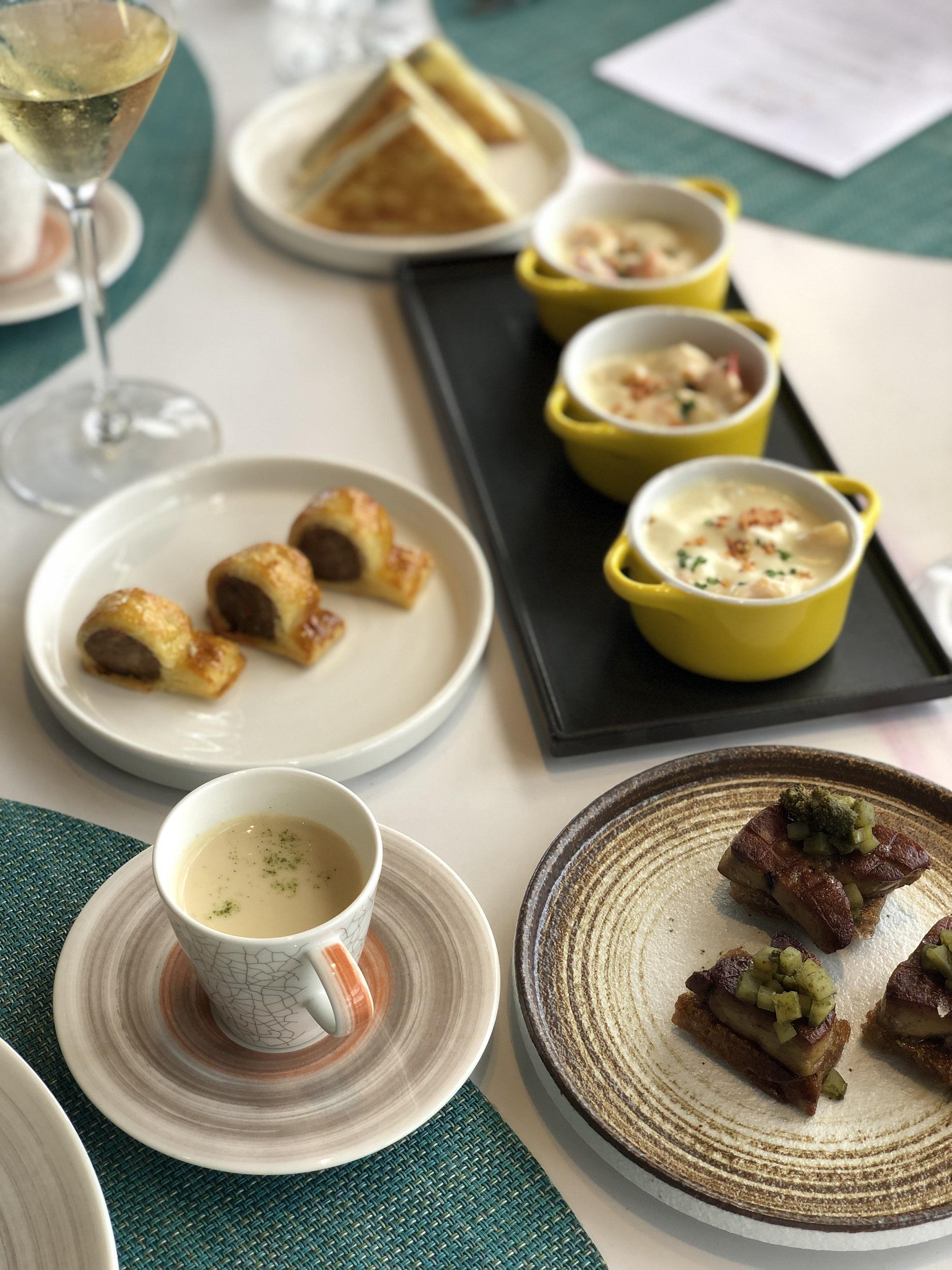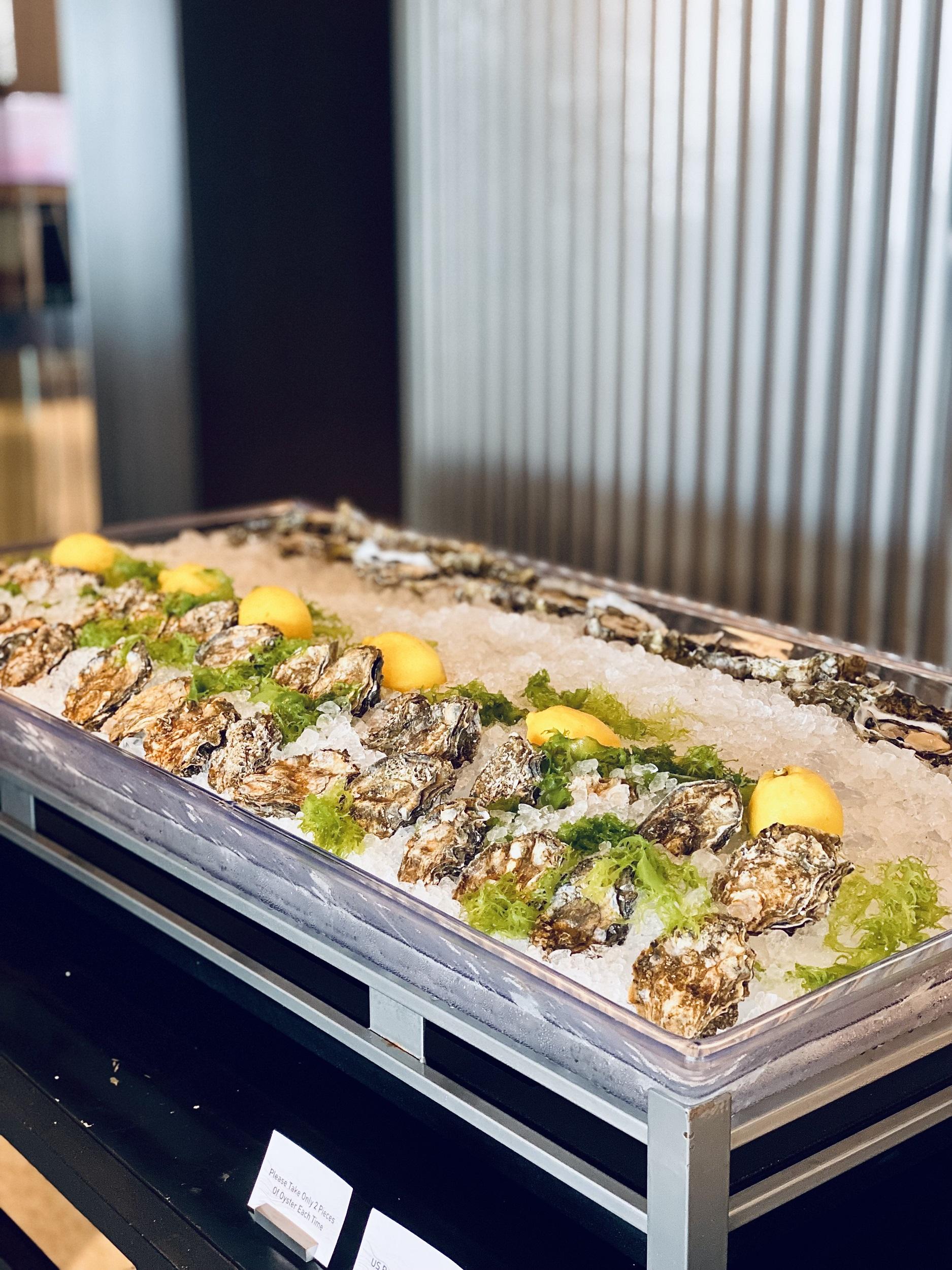 要有好景色不一定要去到郊區,巿區的高層也可以找到靚景,久違了的柏寧酒店「SKYE」,還是叫人驚嘆。8,000呎空間,分成室內用餐及室外酒吧,無論坐室內或室外,都有無敵的維園綠草地及維港海景,未吃飯先養養眼。這個周末半自助早午餐,由正午開始,正適合想假日睡到自然醒才開吃的朋友;半自助餐性價比亦不錯,只需自選主菜,其餘生蠔、冷盤、熱頭盤、甜品等等都是任食,對於想試多多,但又吃得不多,以六百多元吃這個半自助餐,比起吃全自助餐更划算。餐廳因時令供應不同品種的生蠔,正值季節,單是肥美而爽脆的生蠔已吃回本,其餘冷盤凍肉及沙律種類不算特別多,但勝在質素不俗,因為新上任的法籍主廚Florian Muller主理過好幾間米芝蓮星級餐廳,對質素要求比量為高,工序較繁複的法式凍肉批、牛肉他他等都是自家製作,加入法國菜精細的元素,令冷盤變得更精彩。