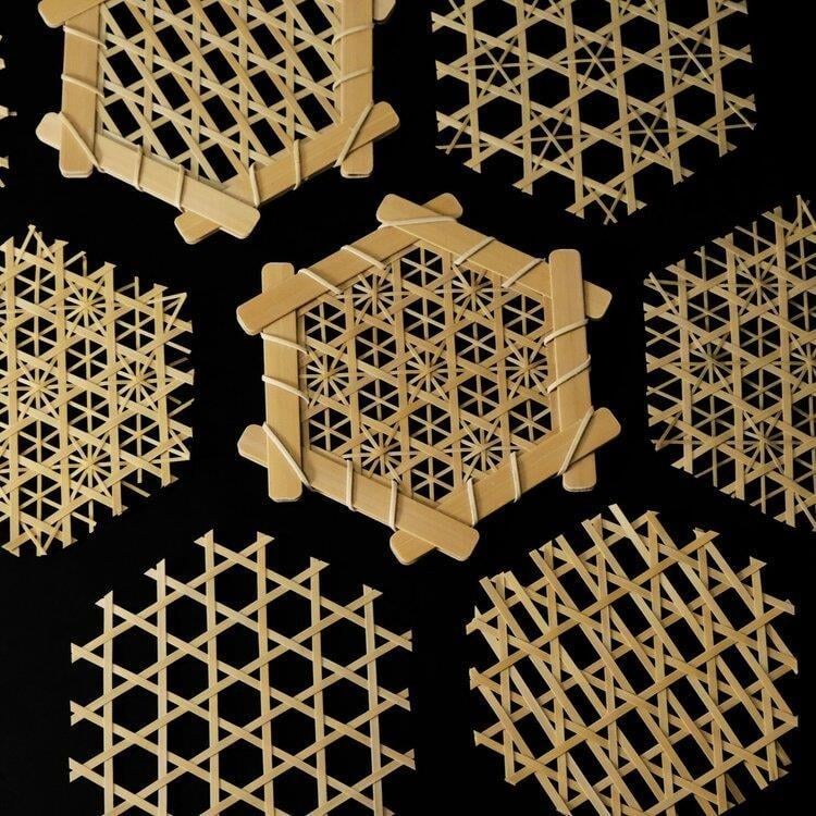 在東方菊花寓意吉祥與長壽。六角菊花編是一種傳統的編織技巧,工作坊以六角編為基礎,再用1.5mm的幼竹織成精緻菊花圖案,兼具美觀實用的墊子。