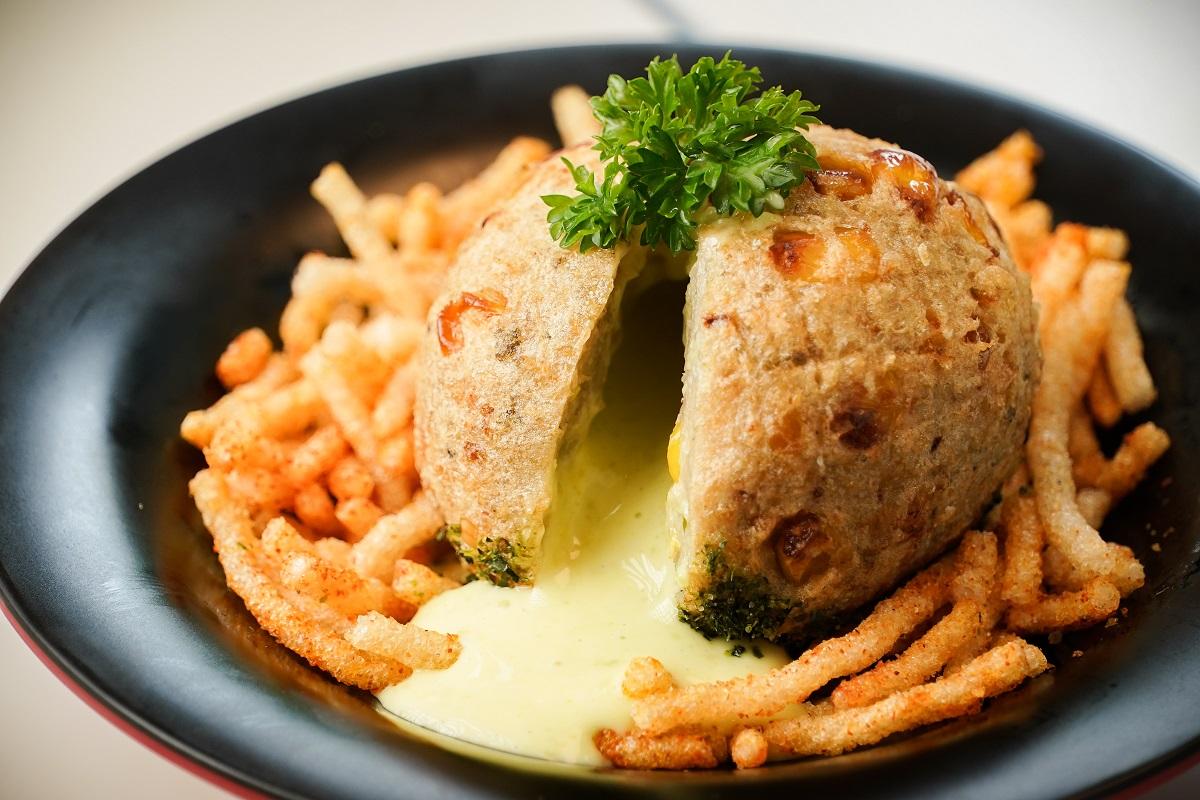 「惹味流心芥末恐龍蛋」足料魚肉包裹流心芥末醬,味道嗆鼻刺激,再拌以炸米線,口感外脆內軟。