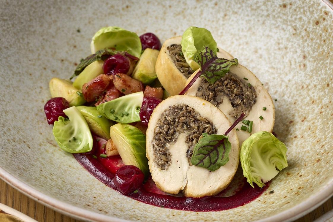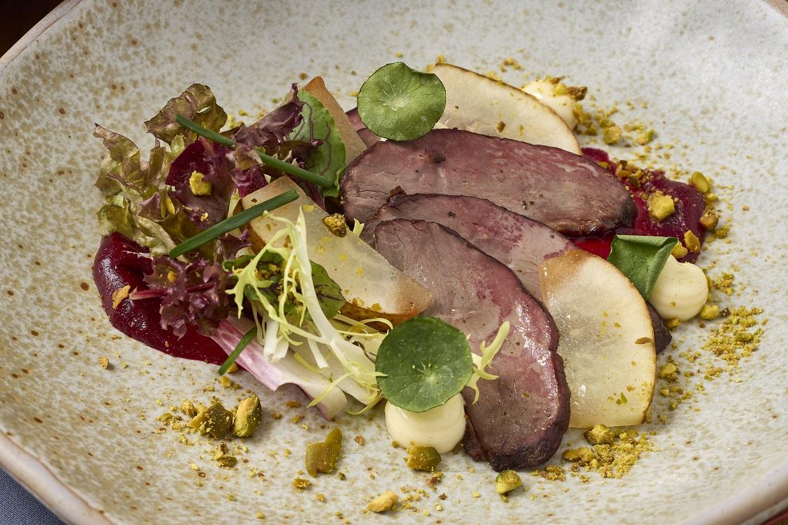 前菜方面,可選煙燻醃製鴨肉火腿配五香梨及新鮮沙律;檸汁醃日本油甘魚、溫室番茄沙律、柚子及脆餅;或是水牛芝士、有機紅菜頭、松子仁、澳洲青蘋果及雪莉酒汁等等。而主菜則有燒火雞卷配椰菜仔、煙肉及紅莓清雞高湯;低溫煮鱸魚、大蝦及椰菜花配忌廉白汁;有機粟米燴飯配菠菜苗及榛子。至於甜品,客人可自選朱古力果仁撻配榛子及朱古力醬或是紅莓伊頓配檸檬及羅勒。菜式賣相精緻,打卡放上網都絕對不失禮!