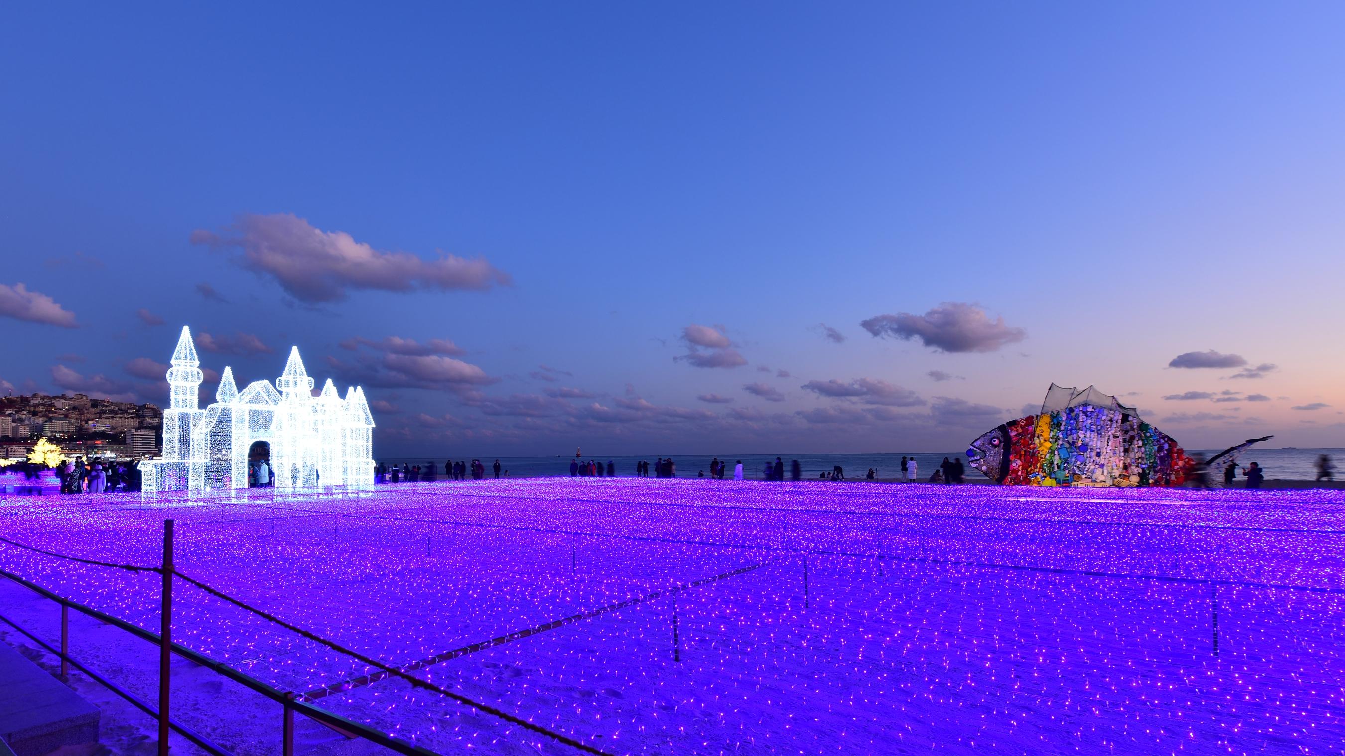 每年釜山都會在海雲台舉行「光之慶典」,是冬天特有的節慶活動。今年來到第9屆,規模比去年大一倍!各種燦爛奪目的燈飾和光影裝置將滿佈在海雲台市場、龜南路海雲台廣場等地,最壯觀的就是位於海雲台海水浴場的一大片LED燈海,不時會有光影藝術表演,非常推薦計劃去釜山旅行的朋友去看看。