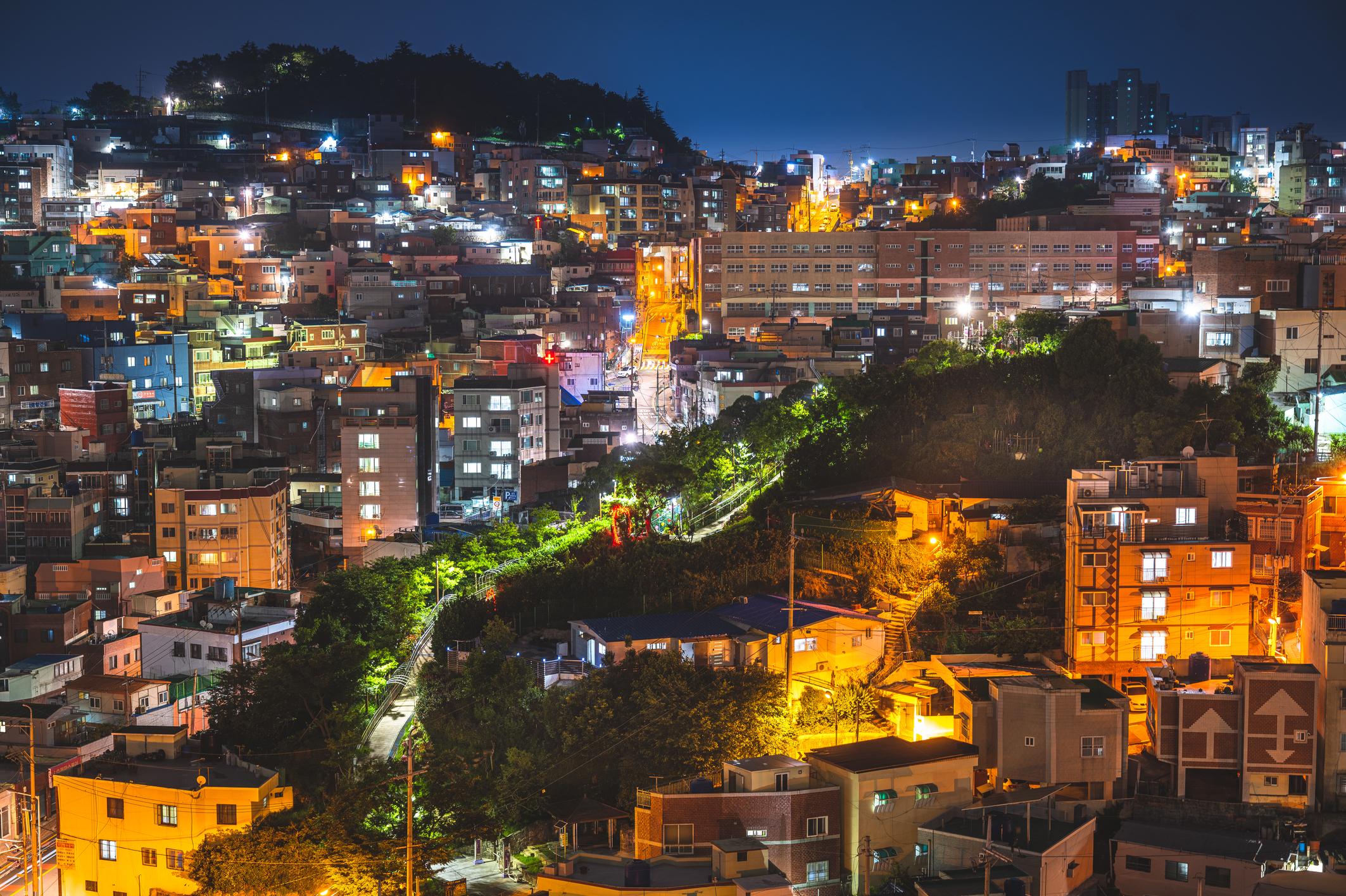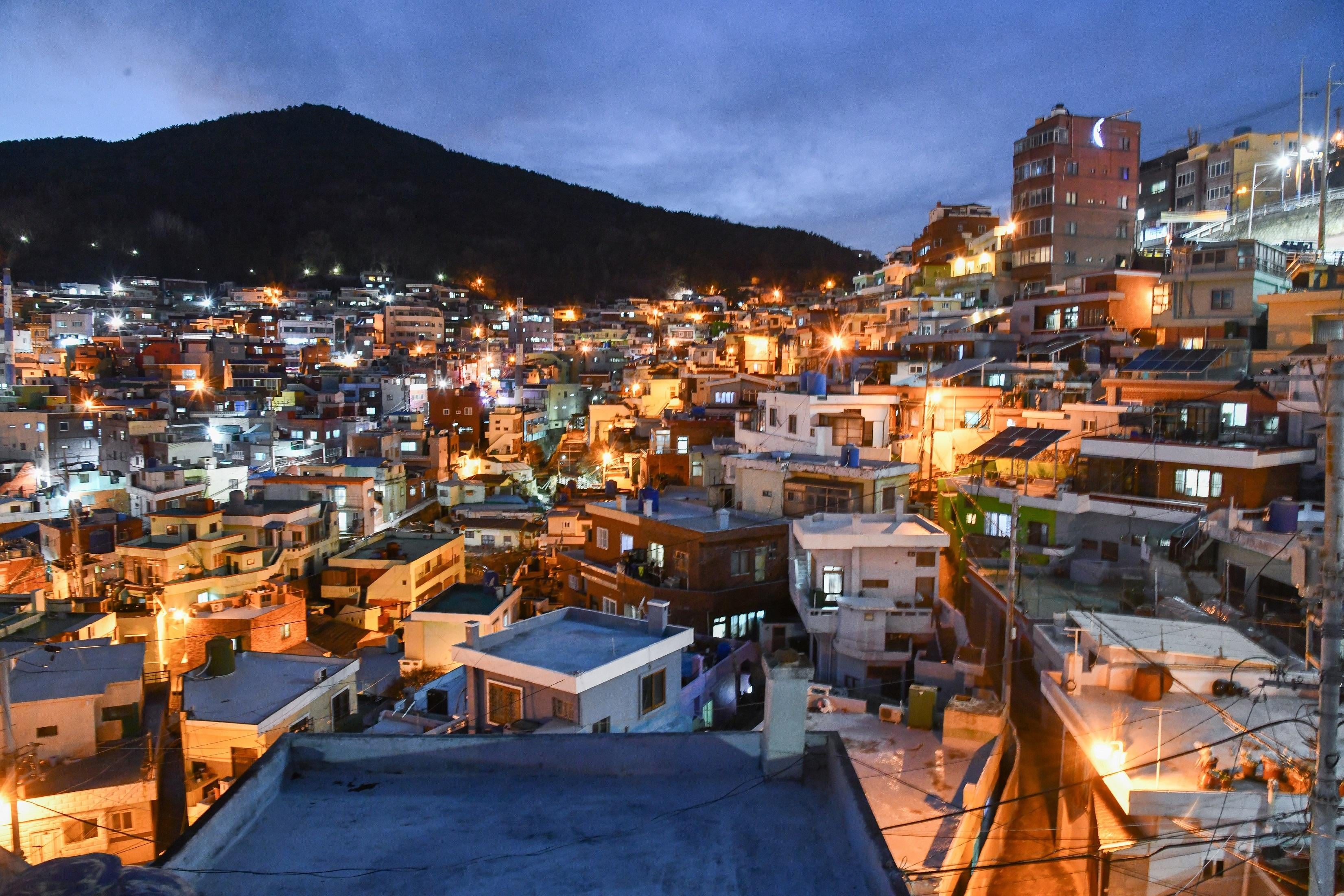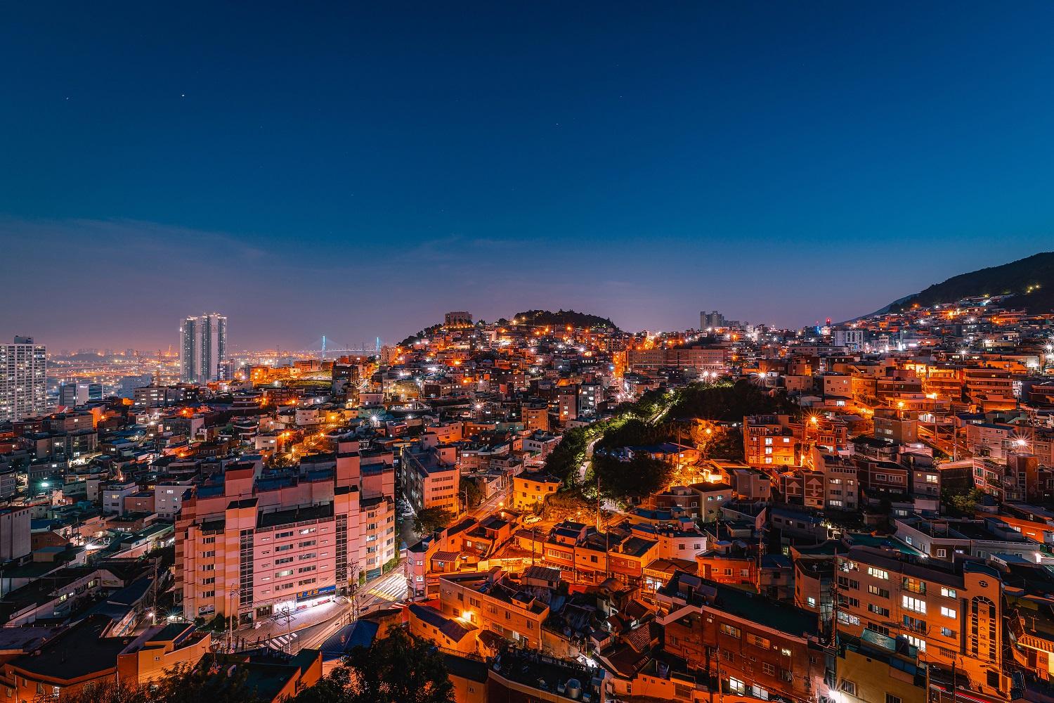 山腰路可說是釜山的獨特象徵,除了有名的甘川文化村外,虎川村亦是一個觀賞浪漫夜景的好去處。山坡上大大小小的房屋形成特別的景象,加上小巷之間橙黃色路燈的點綴,氣氛浪漫。這裡亦是人氣韓劇《三流之路》的拍攝地,因此在虎川文化平台建築旁重現了主角們的秘密基地「南日吧」,劇迷不妨在這裡打卡!