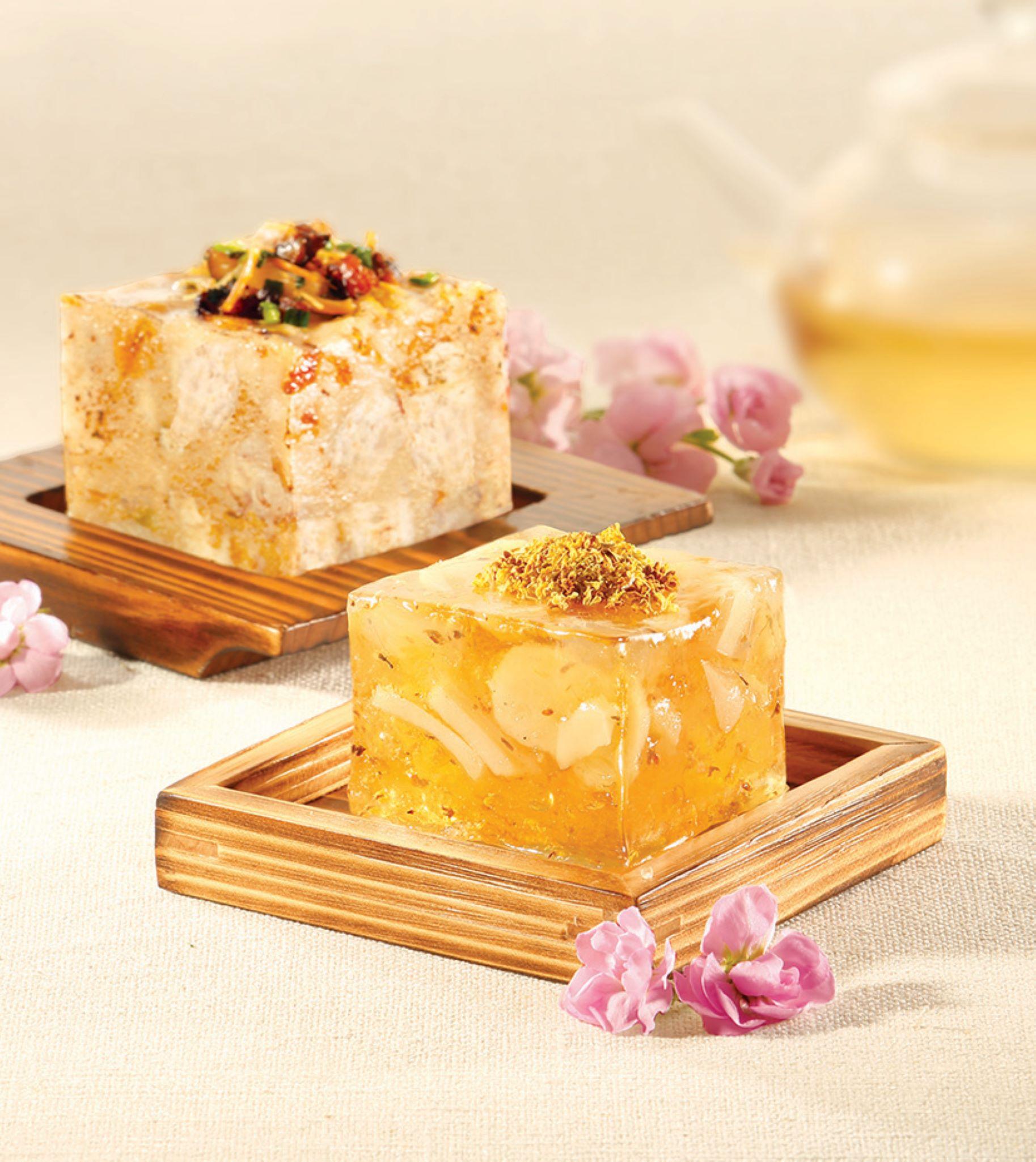農曆新年是一家人團聚的節日,當然要吃好一點,米芝蓮三星中菜廳龍景軒今年推出四款精緻的新年糕點,均由米芝蓮三星中菜廳龍景軒的廚師人手製作。特別推介全新口味蓮藕雪棗馬蹄糕($508),採用公認品質最好的泮塘馬蹄粉,做出香軟彈牙的口感,再配上精心挑選的雪棗,伴以馬蹄和蓮藕,味道清甜輕巧,重塑傳統馬蹄糕的質感與風味。鹹味糕點方面,不能不試鮑魚瑤柱蘿蔔糕($ 628),特別加入兩隻南非鮑魚:一隻切成小粒混入蘿蔔糕當中,另一隻放在蘿蔔糕上,令傳統的蘿蔔糕更上一層樓。蘿蔔糕特意使用高比例的蘿蔔,並將之切成粗絲,令口感更加實在,加上冬菇﹑蝦米以及日本宗谷瑤柱,鮮味豐富。賀年糕點可於2022年12月19日至2023年1月21日期間在網上商店預訂。賓客於2022年12月31日或之前訂購可享85折。賀年糕點可於2023 年 1 月 14 日開始至 21 日上午10時至晚上8時期間於四季餅店領取。