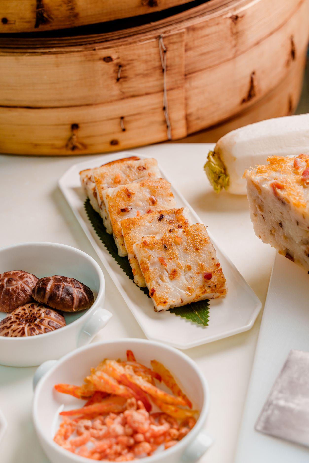 米芝蓮星級中菜明閣特別採用本地自種蘿蔔製作出鮑魚瑤柱臘味蘿蔔糕($338),加入多款上乘材料,真材實料之餘亦有心思!廚藝團隊今年誠意選用本地自種的白蘿蔔,於粉嶺的本地農場限量耕種,親力親為實現「農場到餐桌」的綠色餐飲概念,為賀年蘿蔔糕賦予一層新的意義。整個種植期為三個月多,收成的蘿蔔約二千斤至三千斤重。大廚亦選用多款上乘材料包括特級玫瑰臘腸、鮮製臘肉、瑤柱等,再配上寓意「包羅萬有」的原隻鮑魚,本地蘿蔔的清甜味道中滲透了香濃鮑魚鮮味,把蘿蔔糕的鮮香昇華至極致。另外酒店同步推出富貴椰汁年糕($268)及棗皇椰汁糕($348),同樣值得一試。