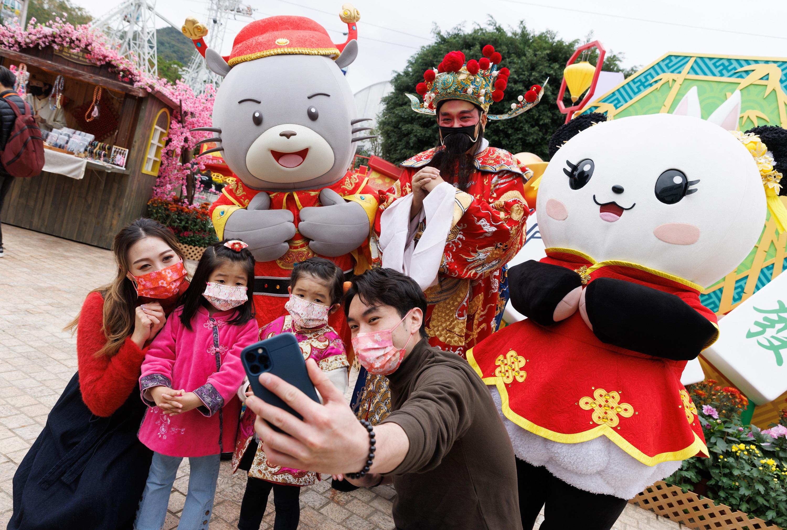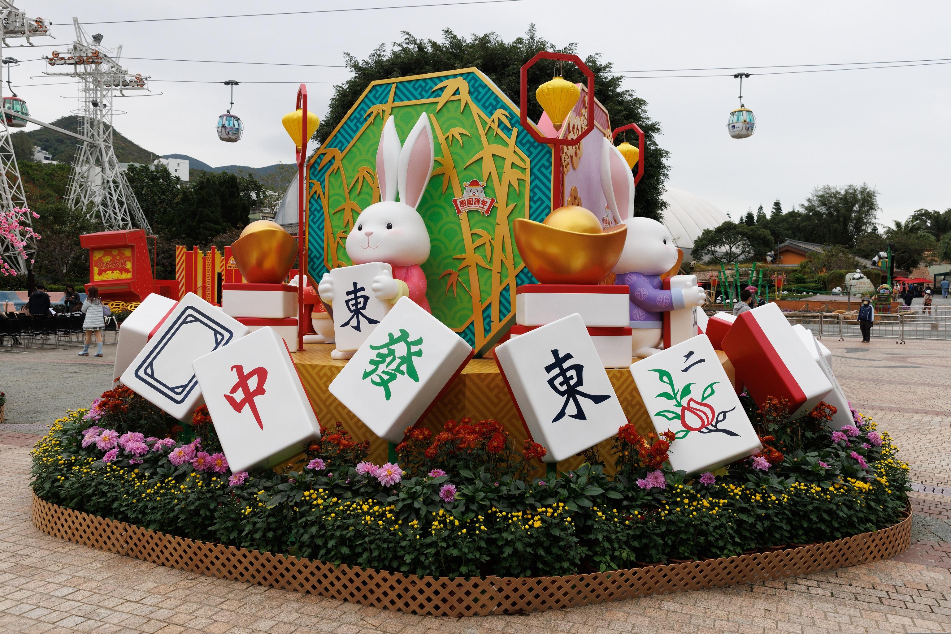 為慶祝農曆新年,公園一共設多個新春打卡位:「福滿萌兔村」可以與兔仔村長打卡,裡面有燈籠、巨型熊啤啤等,更有巨型扭蛋機,扭蛋裡面有糖果。「免兔運牌坊陣」可與穿上新年服飾的巨型白兔及四周的特大麻將合照;再到「兔迎新歲市集」辦年貨,必買手作針織頭飾及手作波板糖。亦可以到「福兔鳴鼓陣」齊齊擊鼓互動,敲響新春好意頭。