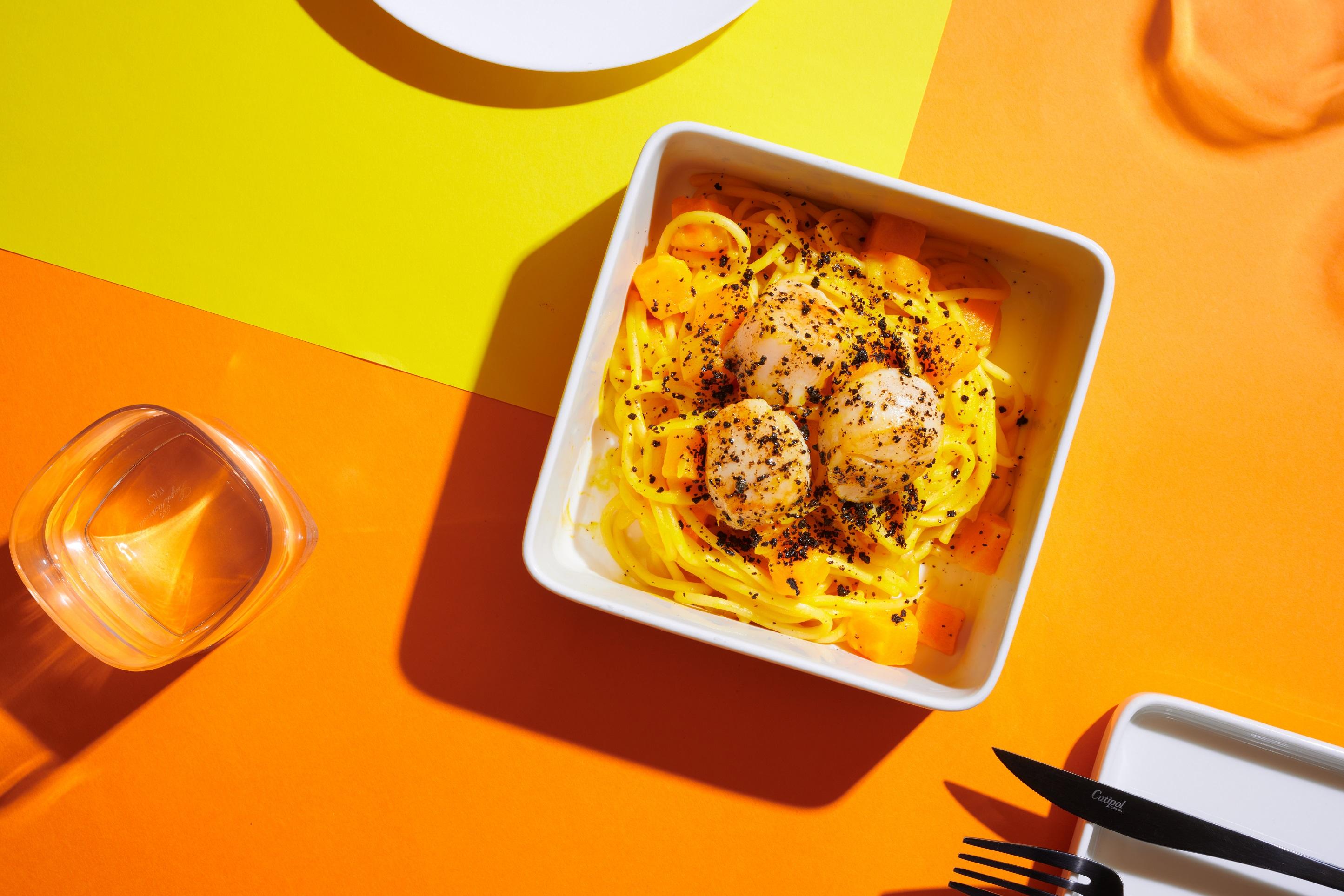 主菜方面則有香煎帶子意大利粉配南瓜汁亦富特色,靈感源自草間彌生為人熟悉的創作主題──南瓜。意大利粉彈牙、有嚼勁,配以香滑南瓜汁及鮮美帶子,最後撒上黑橄欖粉,令味道更具層次。這道菜式色香味俱全,展現大廚匠心。喜歡啖啖肉,可一嘗西班牙豬柳,菜式伴以椰菜仔及哈里薩辣醬,微辣惹味。壓軸甜品是朱古力南瓜蛋糕,意念是向草間彌生致敬。