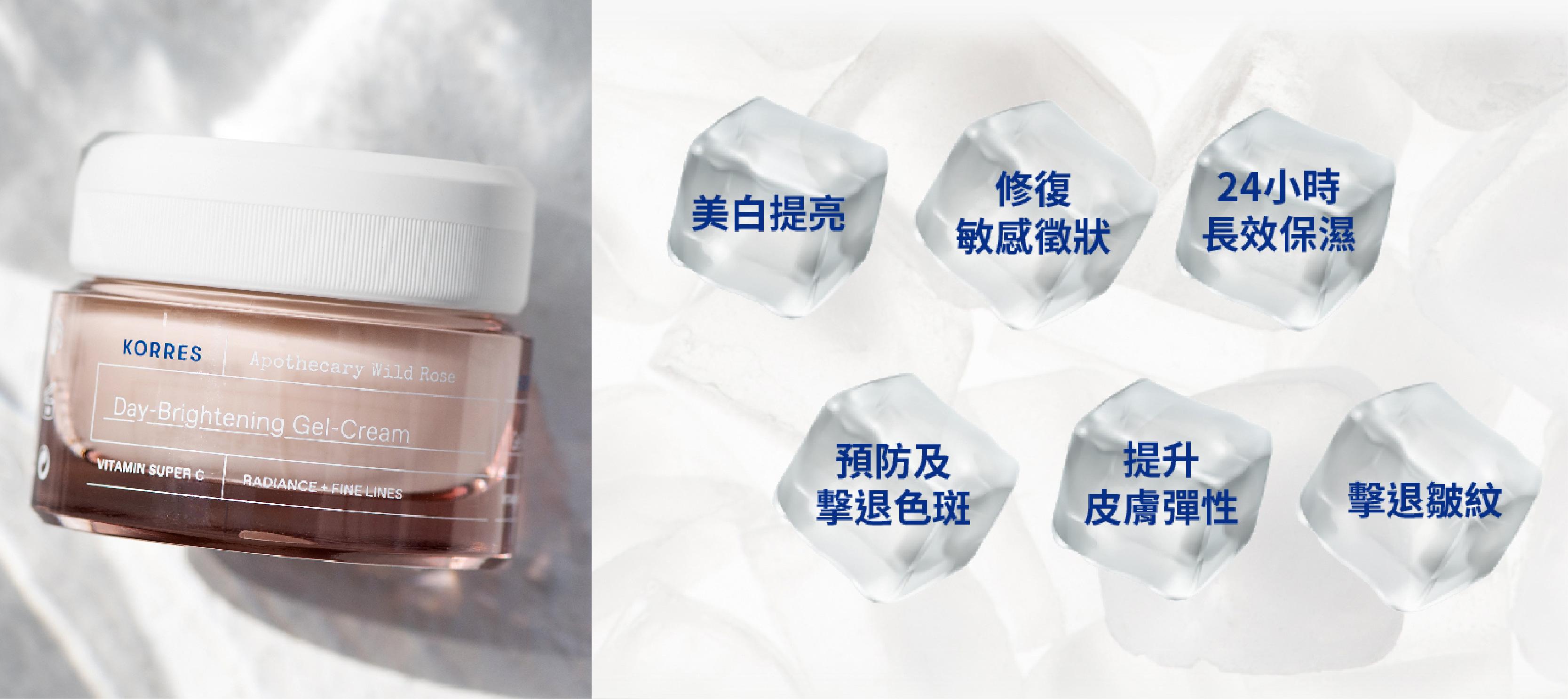 KORRES野玫瑰15%維C美白袪斑精華配合野玫瑰維C美白祛斑面霜美白效果更顯著;美白面霜有效預防及擊退色斑,美白提亮,24小時長效保濕及提升肌膚彈性。