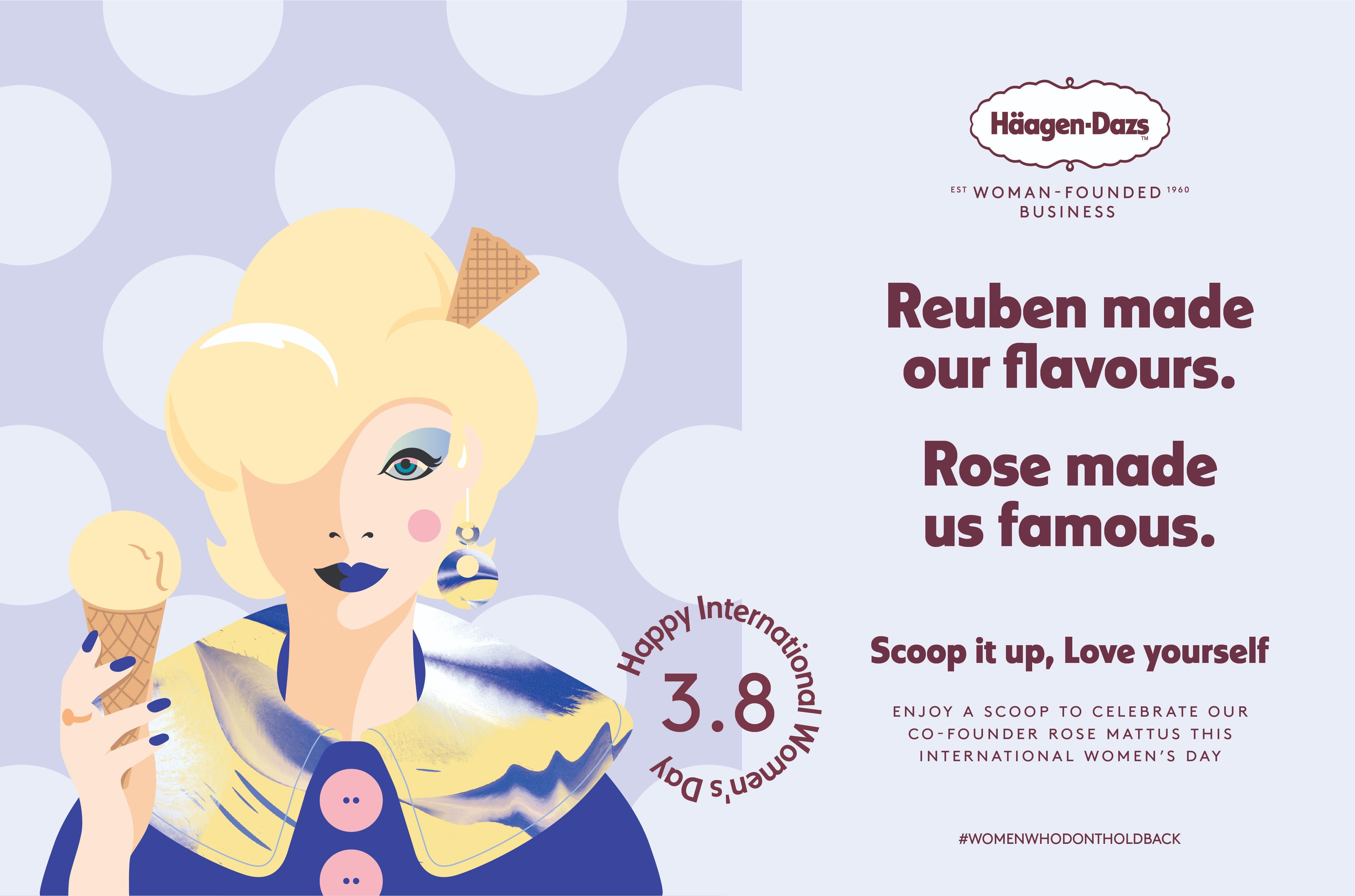 香港女性出名搏殺,Häagen-Dazs的共同創辦人Rose Mattus當年秉持著「Don’t Hold Back」精神,在60年代初的美國推翻「男主外,女主內」的大潮流,將丈夫Reuben研發的雪糕銷售到全世界,成為全球知名的雪糕品牌。為了紀念Rose這位幕後英雌,Häagen-Dazs特別藉國際婦女節,於2月27日至3月12日推出「Scoop it up, Love yourself」推廣優惠,在全港22間專門店單一消費任何雪糕產品滿$100即減$38,讓大家以雪糕獎勵一下自己!品牌更找來歌手李幸倪(Gin)及女藝人符曉薇(Leanne)分享她們永不退縮的精神。