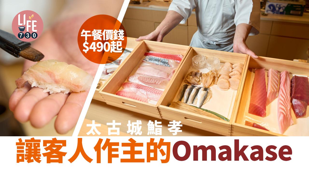 香港的omakase,一向以來,廚師俾乜你就食乜,太古城新鮨店鮨孝,在廚師們未與客人取得互信前,壽司料理交由客人自行選擇喜歡的口味,回歸壽司店的初心,價錢親民大眾化,讓客人可吃到正宗江戶前壽司。鮨孝的午餐價錢由HK$490起,晚餐HK$690起,亦設有單點壽司。