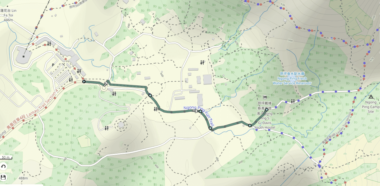 由昂坪市集起步行約10-15分鐘便抵達昂坪青年旅舍。