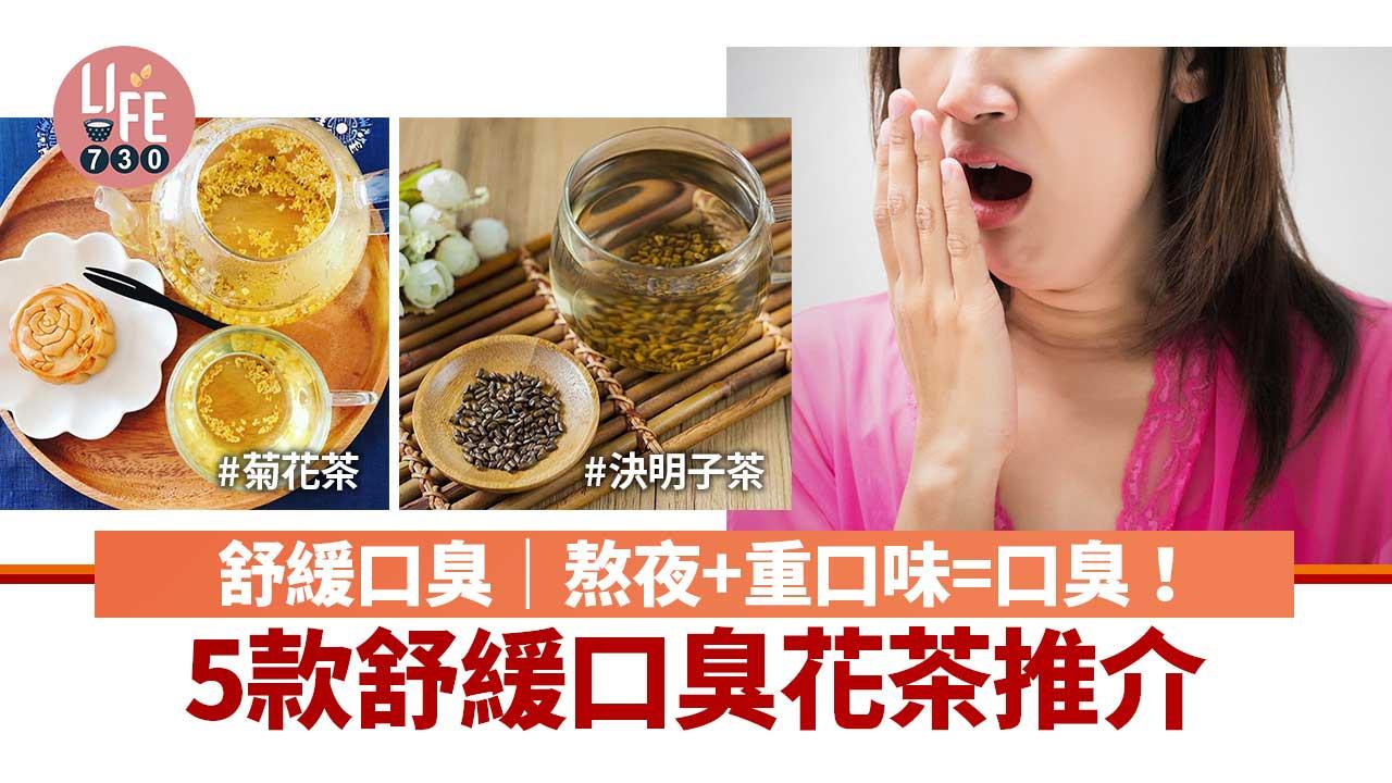 香港人無論工作或學習生活都十分繁忙,不良的睡眠或飲食習慣容易導致身體出現毛病,而口臭(英文halitosis)問題亦是不少都市人會面對的問題。以下就為大家推介菊花茶、枸杞茶、決明子茶、金銀花茶及桂花茶5款舒緩口臭的花茶,每款食材只需取10克以下加熱水沖泡即可,簡單便可以令口腔回復清新!